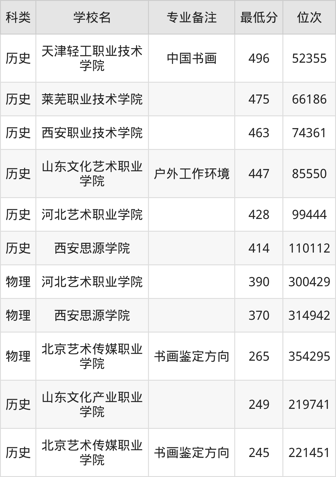 文物修复与保护专业分数最低的民办大学是北京艺术传媒职业学院,其2025年最低分为245分,考生只要超专科线45分即有概率能被录取。