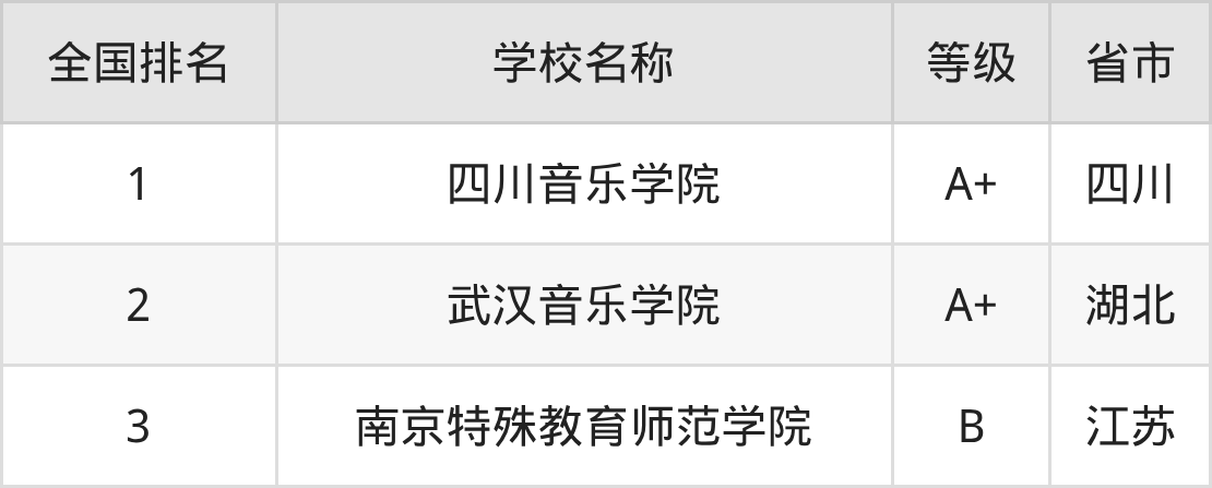 下面是音乐治疗专业全国排名前3的大学名单及实力评级: