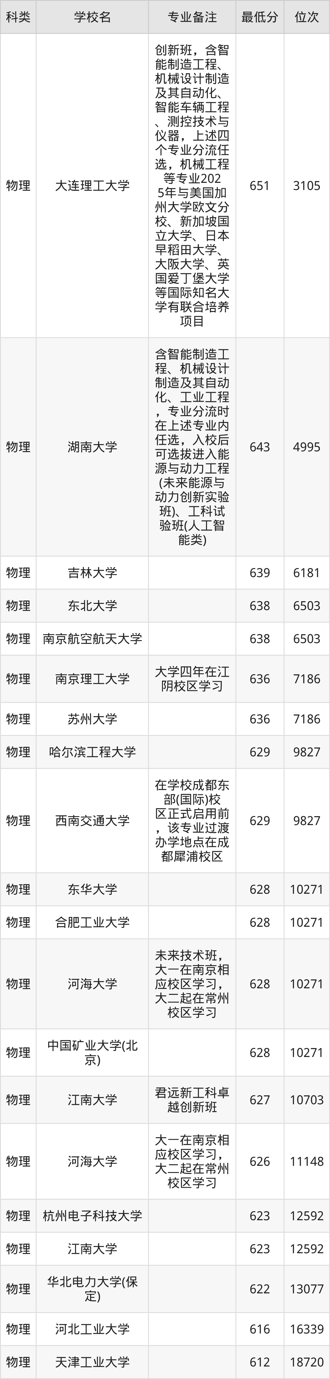 下面是2025年智能制造工程录取分数线Top100一览表:
