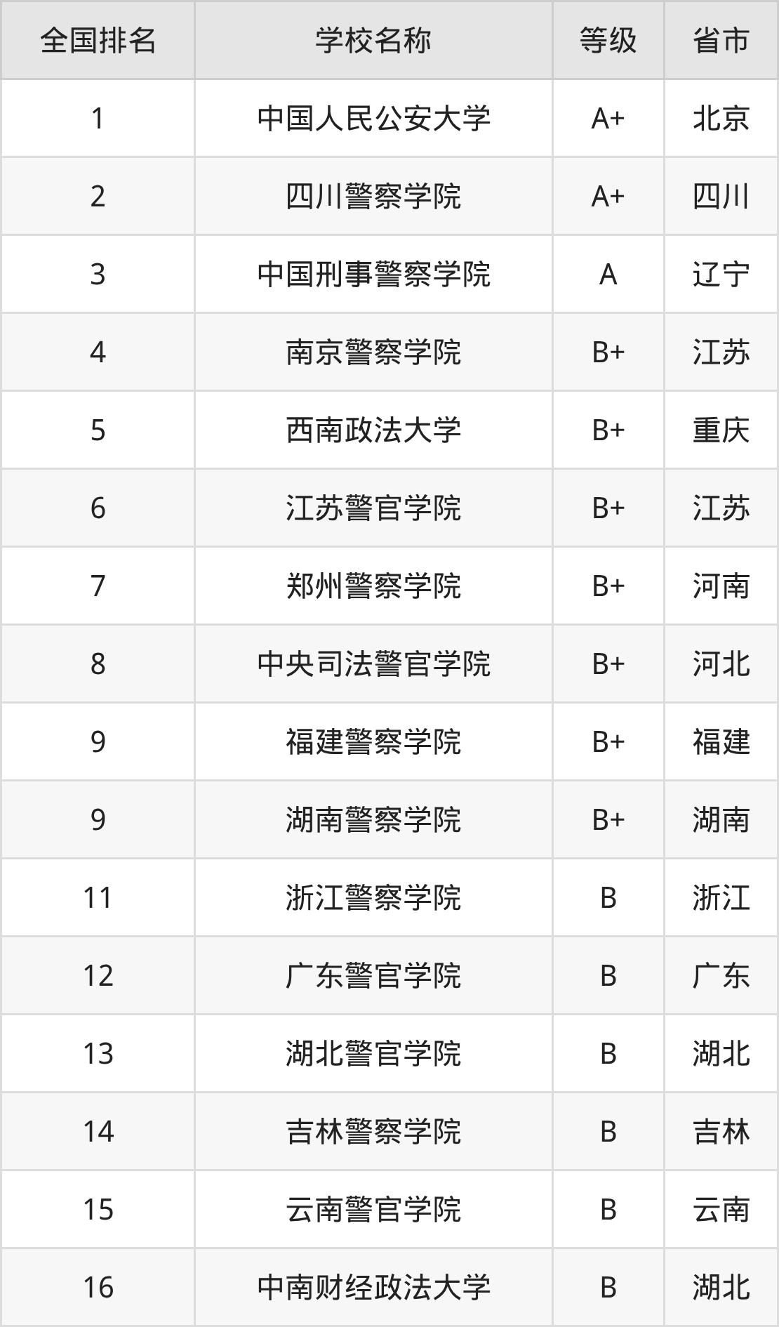 1、中国人民公安大学(A+级)
