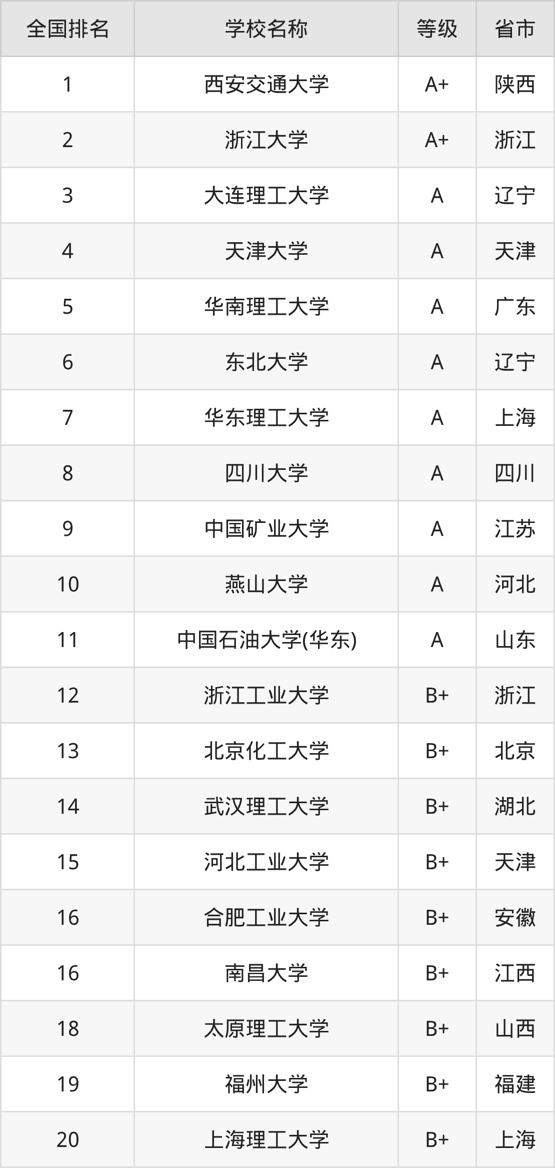 下面是过程装备与控制工程专业全国排名前10的大学名单及实力评级: