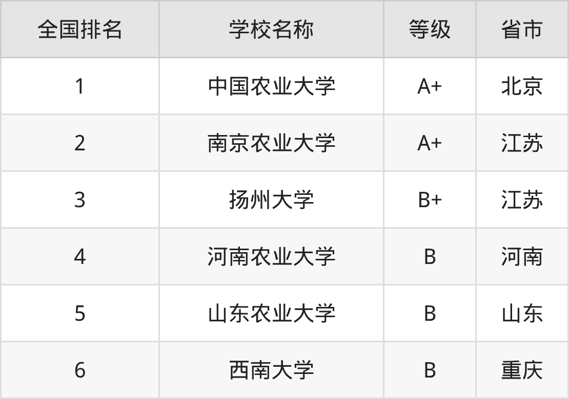 下面是兽医公共卫生专业全国排名前6的大学名单及实力评级: