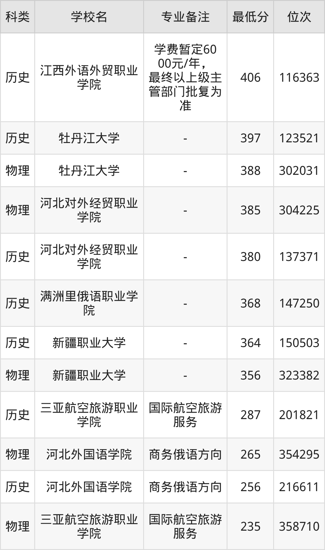应用俄语专业分数最低的民办大学是三亚航空旅游职业学院,其2025年最低分为235分,考生只要超专科线35分即有概率能被录取。