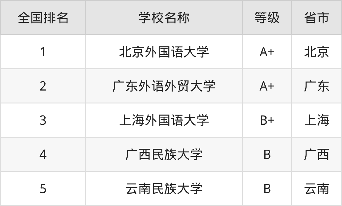 全国柬埔寨语开设院校参与排名的共有5所,实力最强的是北京外国语大学(全国排名第1名),其专业实力等级被评为A+级。