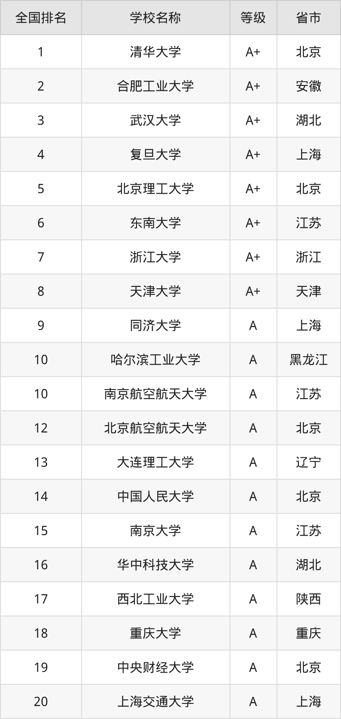 下面是信息管理与信息系统专业全国排名前10的大学名单及实力评级: