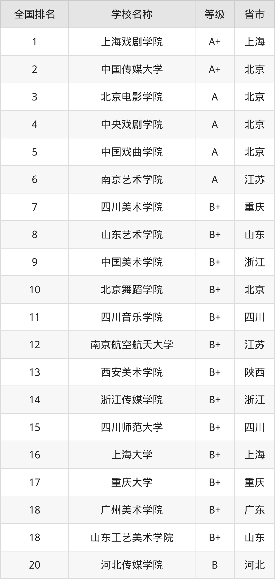 1、上海戏剧学院(A+级)