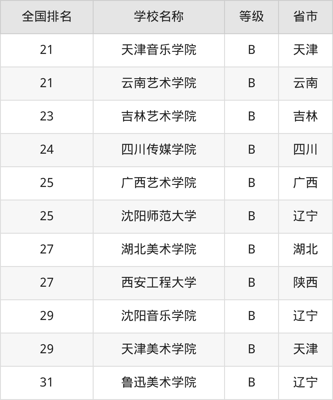 下面是戏剧影视美术设计专业全国排名前10的大学名单及实力评级: