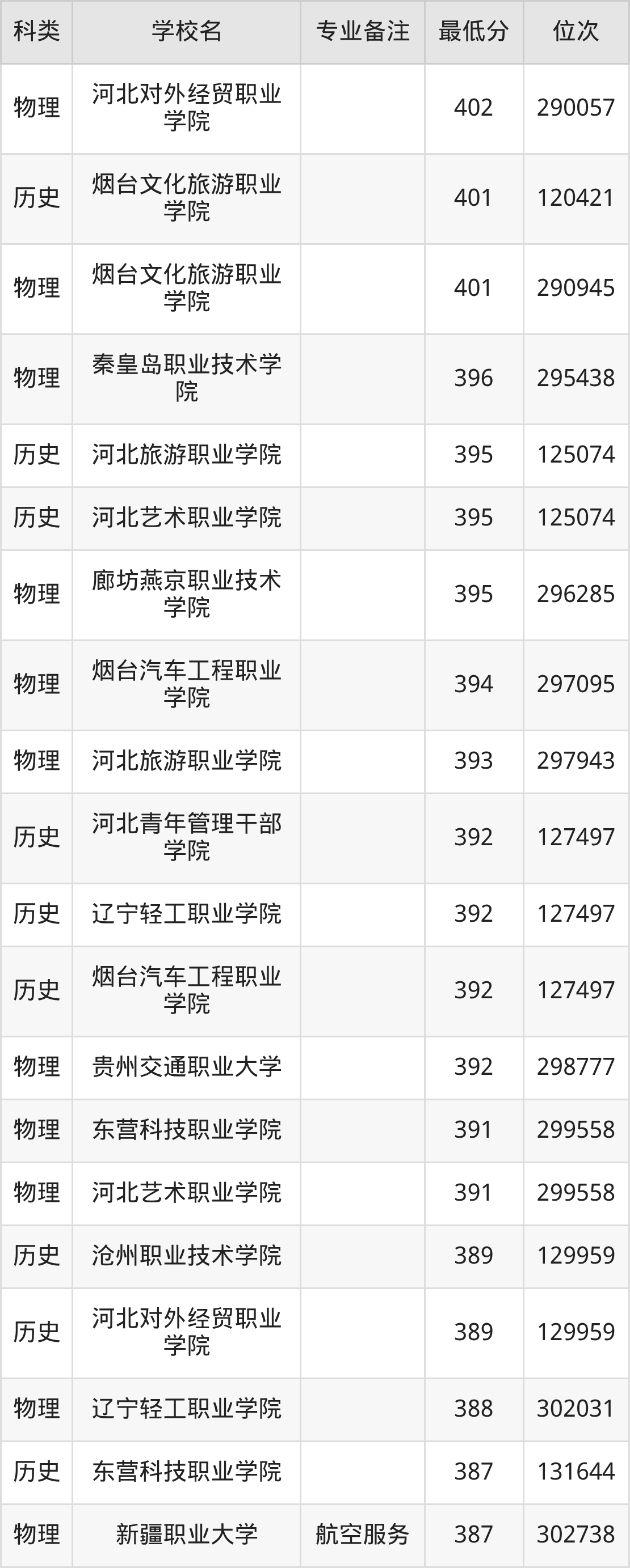 2025年全国大学空中乘务录取分数线在200分~496分之间。数据显示,考生如果想报考公办大学,分数要在306分及以上,最低分院校有可克达拉职业技术学院等。