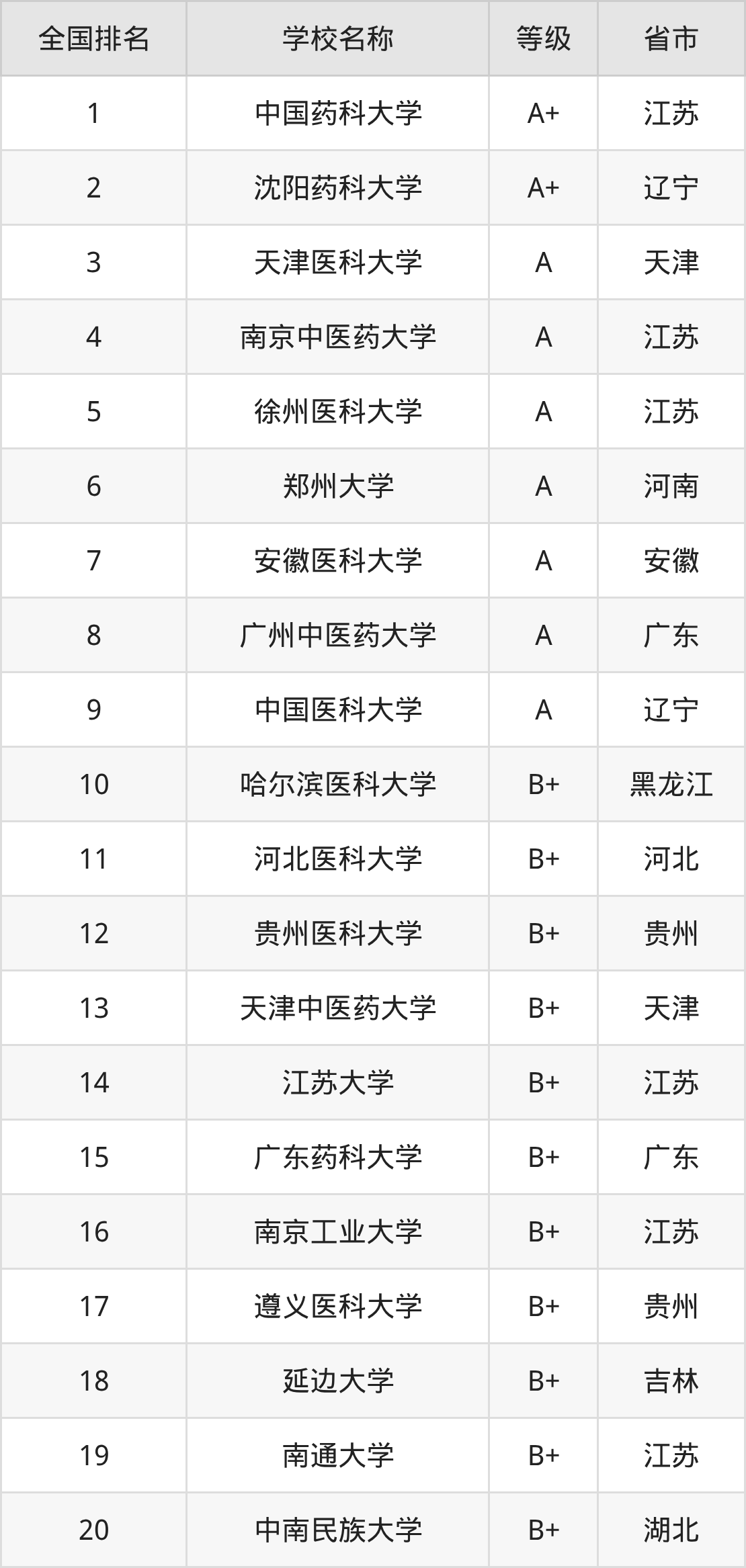 下面是药物制剂专业全国排名前10的大学名单及实力评级: