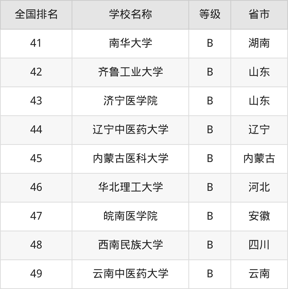 全国药物制剂开设院校参与排名的共有49所,实力最强的是中国药科大学(全国排名第1名),其专业实力等级被评为A+级。