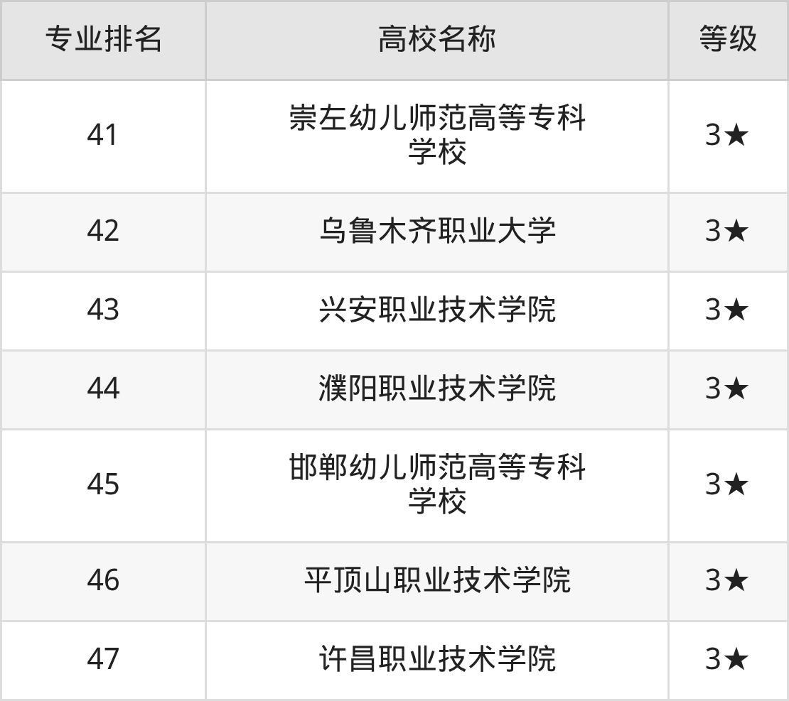 全国小学语文教育开设院校参与排名的共有47所,实力最强的是襄阳职业技术学院(全国排名第1名),其专业实力等级被评为5★级。