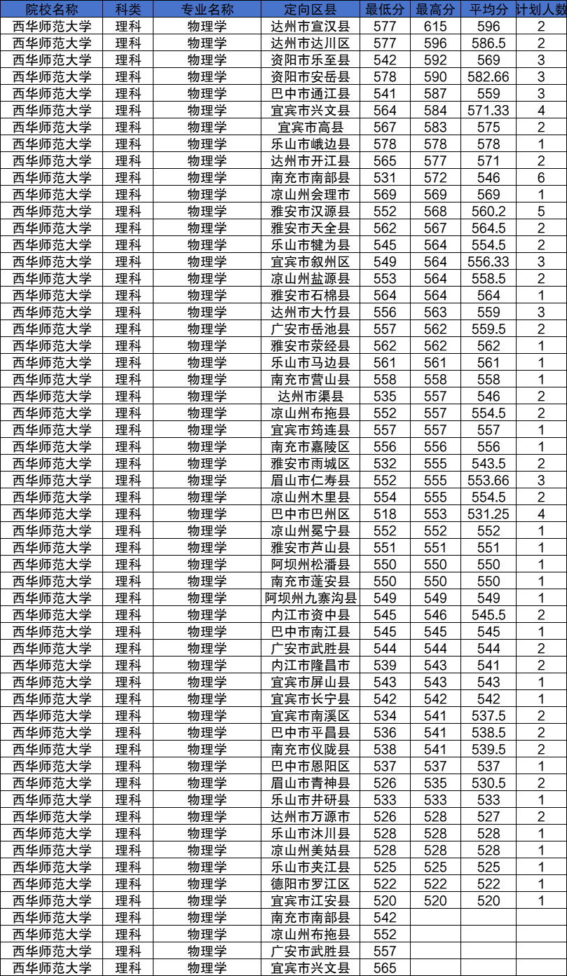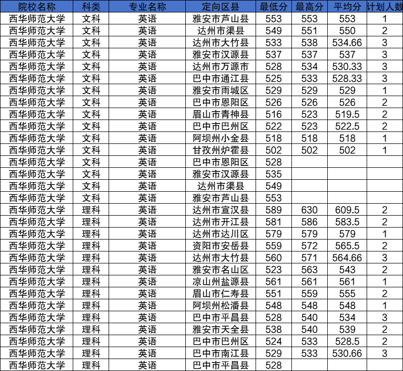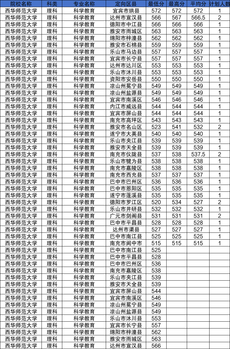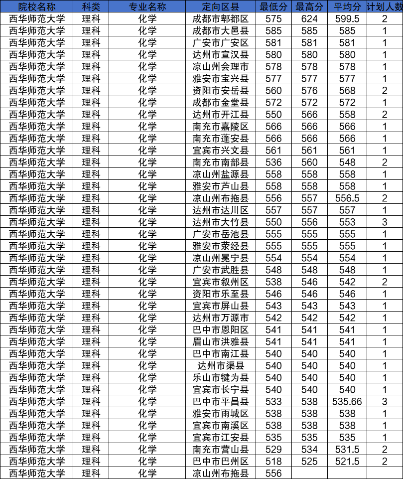 西华师范大学2024年高招本科提前批公费师范生录取已完成,共录取550人。