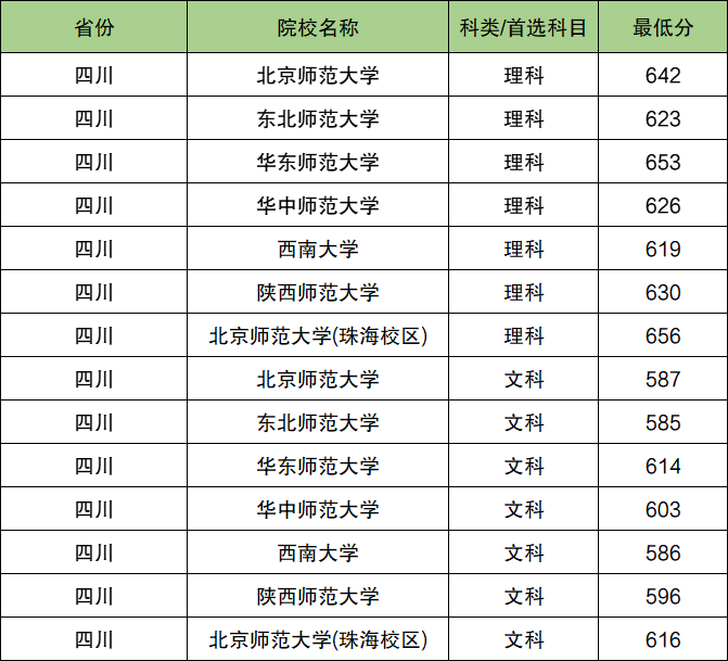 四川省2024年本科提前批公费师范生包括国家公费师范生和地方公费师范生,录取分数线已经公布,具体如下: