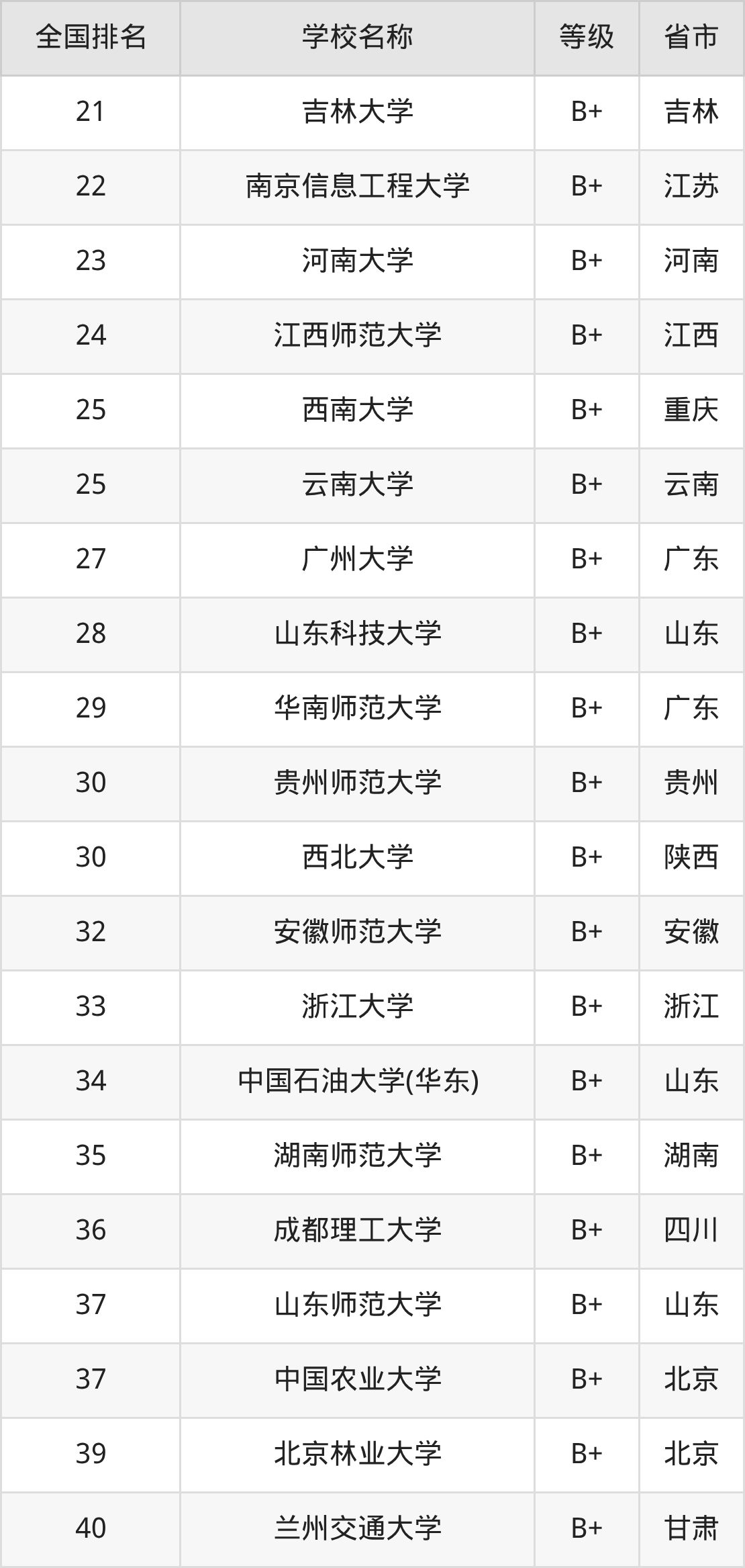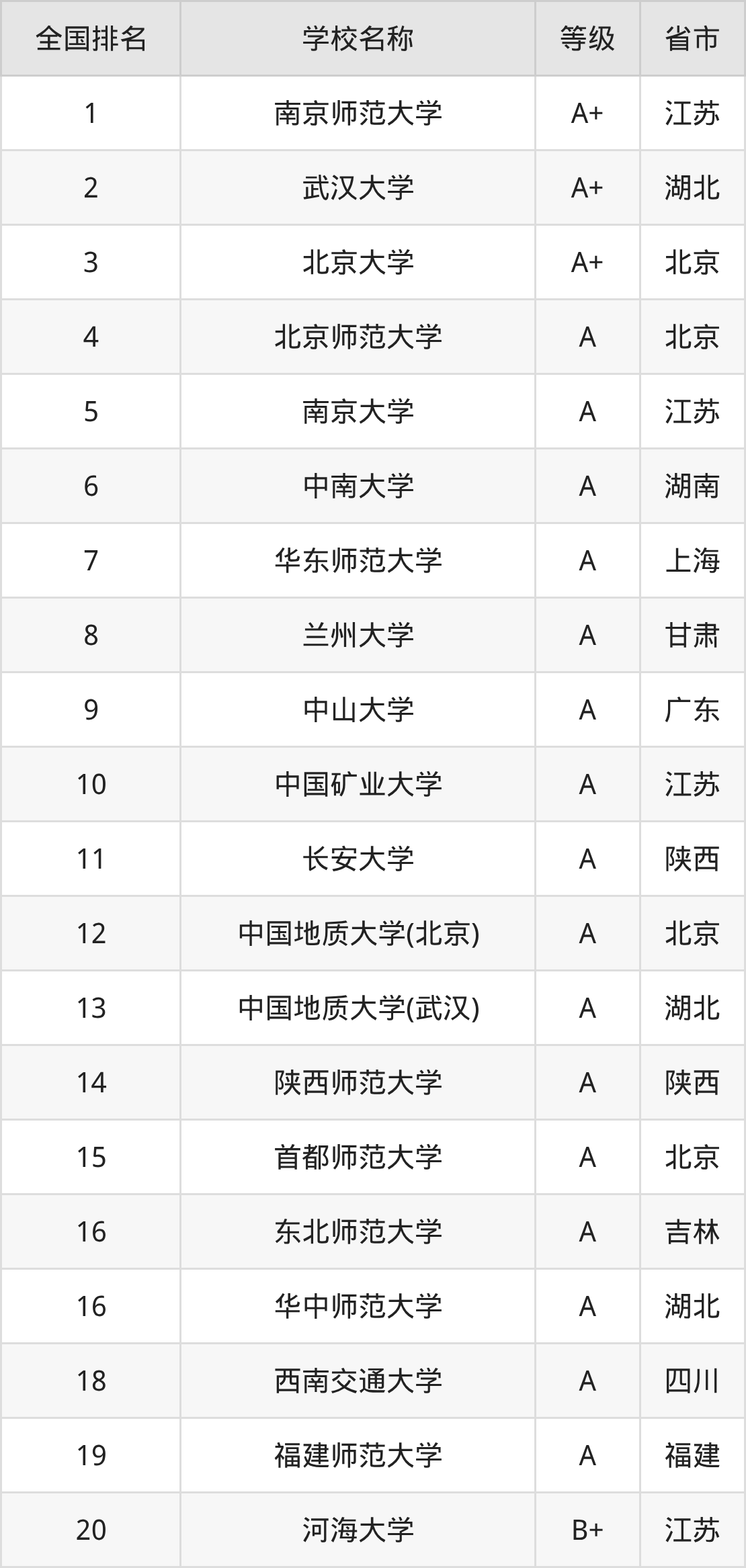下面是地理信息科学专业全国排名前10的大学名单及实力评级: