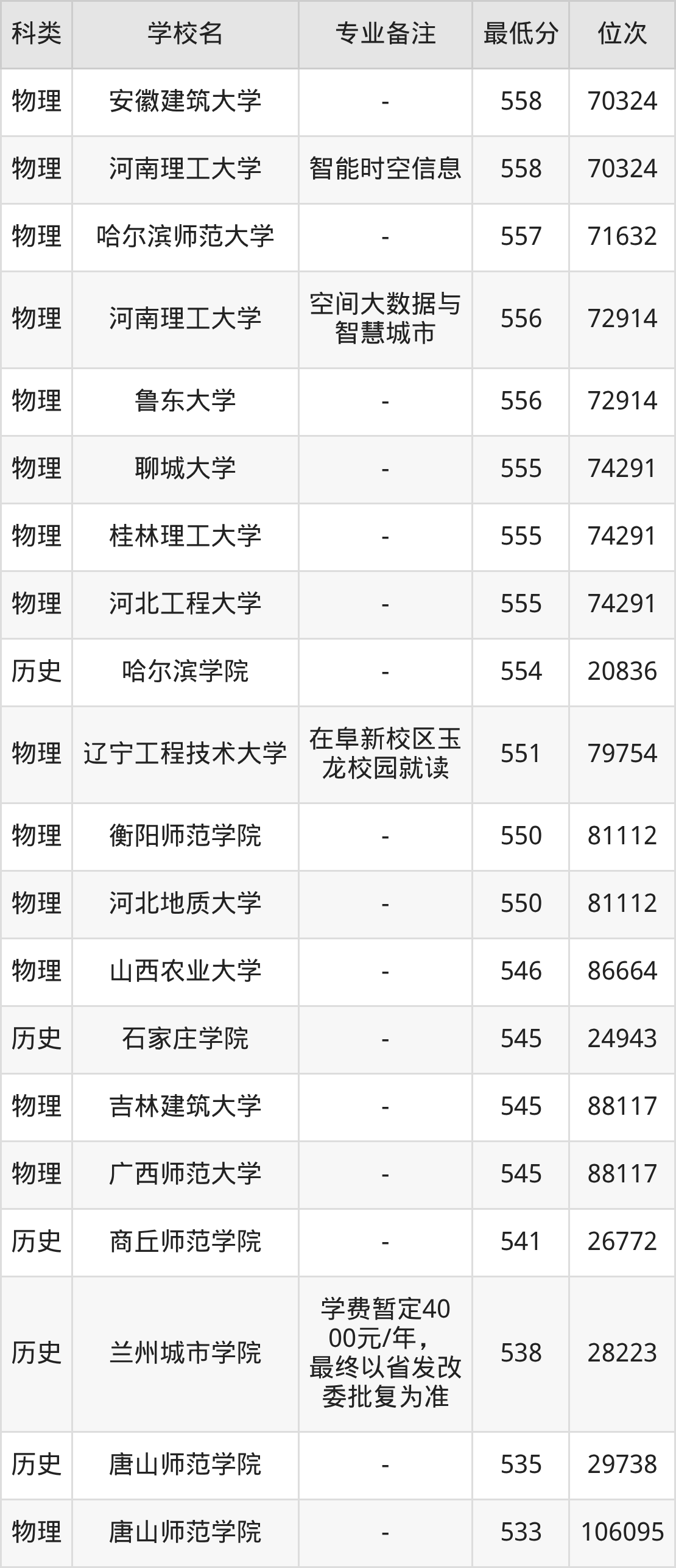 下面是2025年地理信息科学录取分数线Top84一览表: