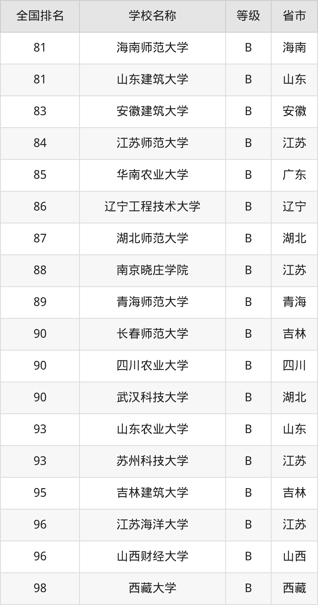 全国地理信息科学开设院校参与排名的共有98所,实力最强的是南京师范大学(全国排名第1名),其专业实力等级被评为A+级。