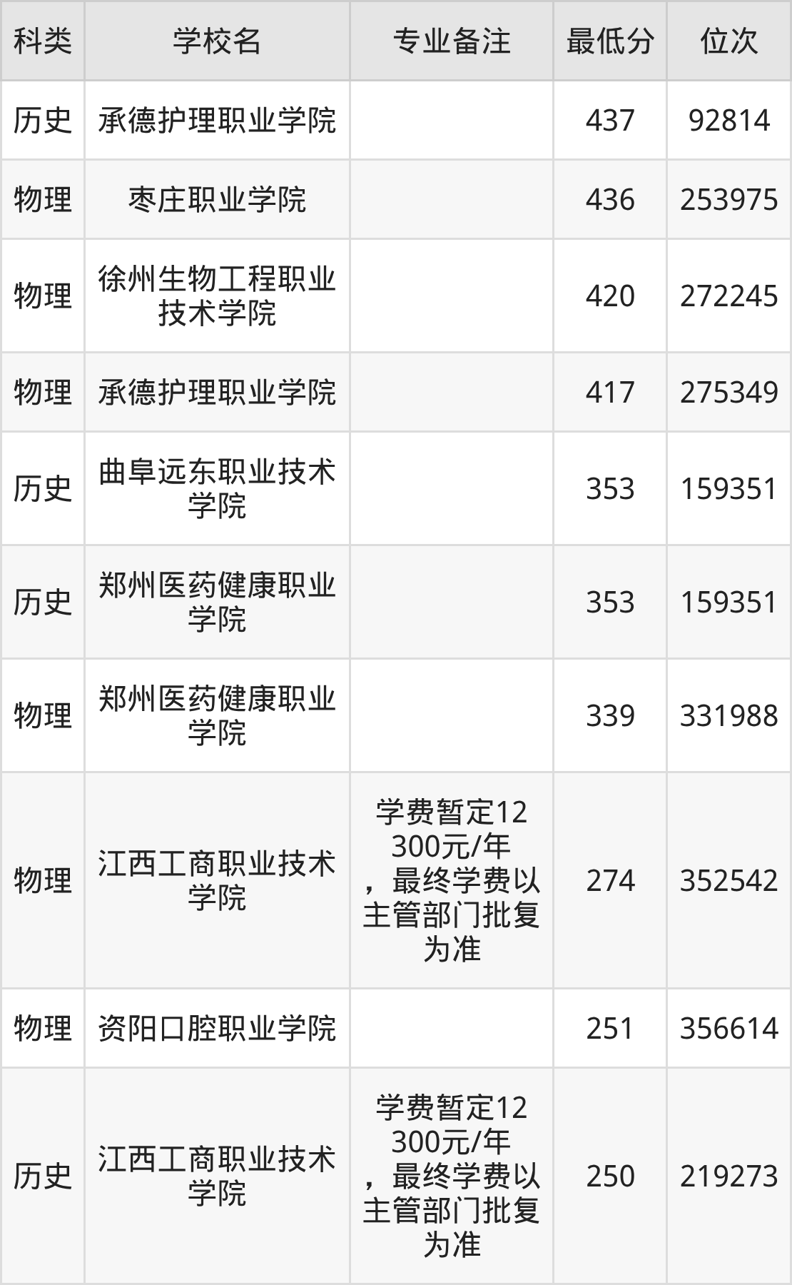 下面是2025年口腔卫生保健录取分数线Top10一览表: