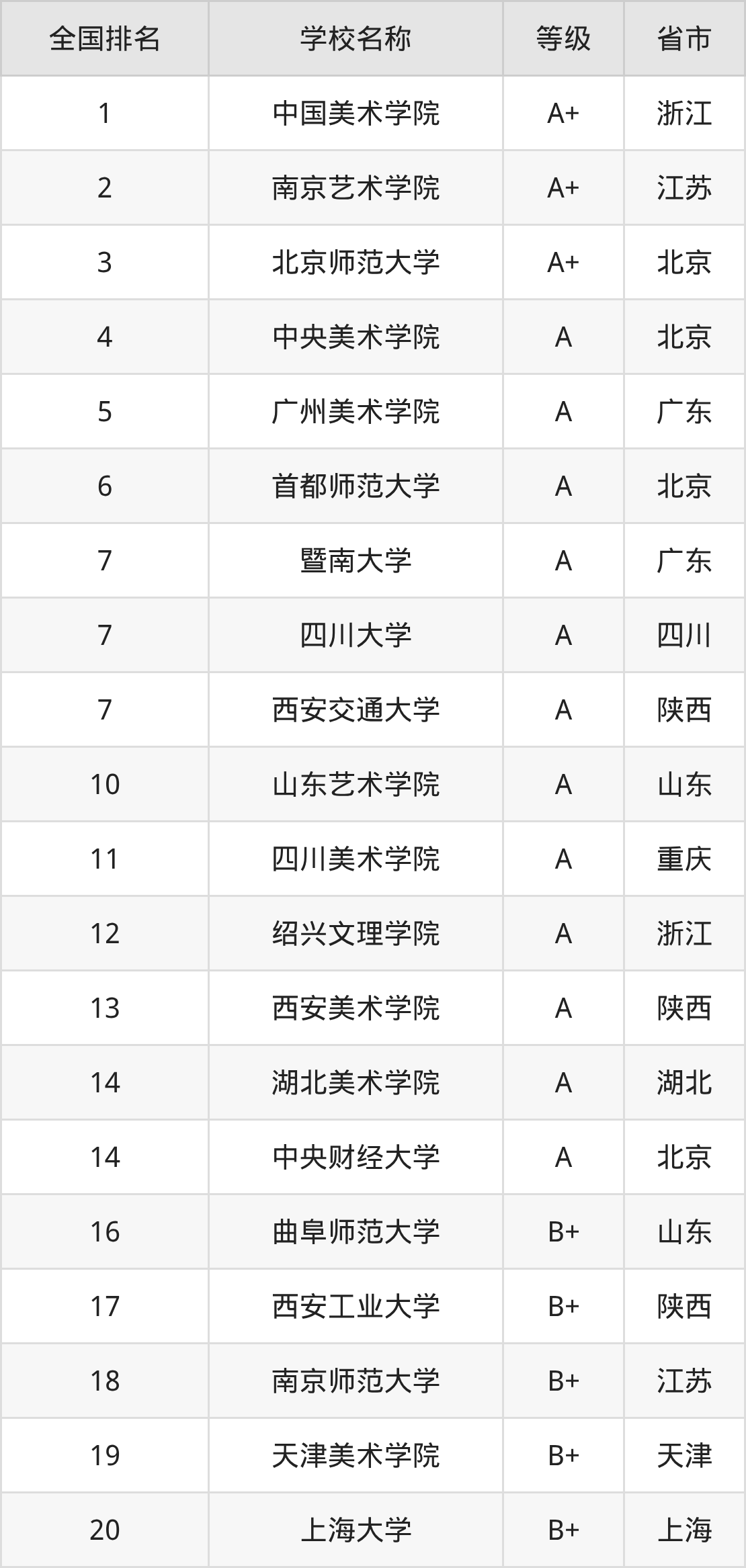 1、中国美术学院(A+级)