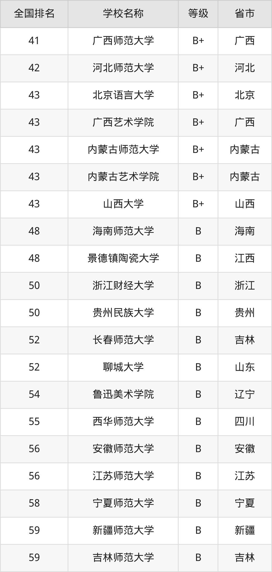 下面是书法学专业全国排名前10的大学名单及实力评级: