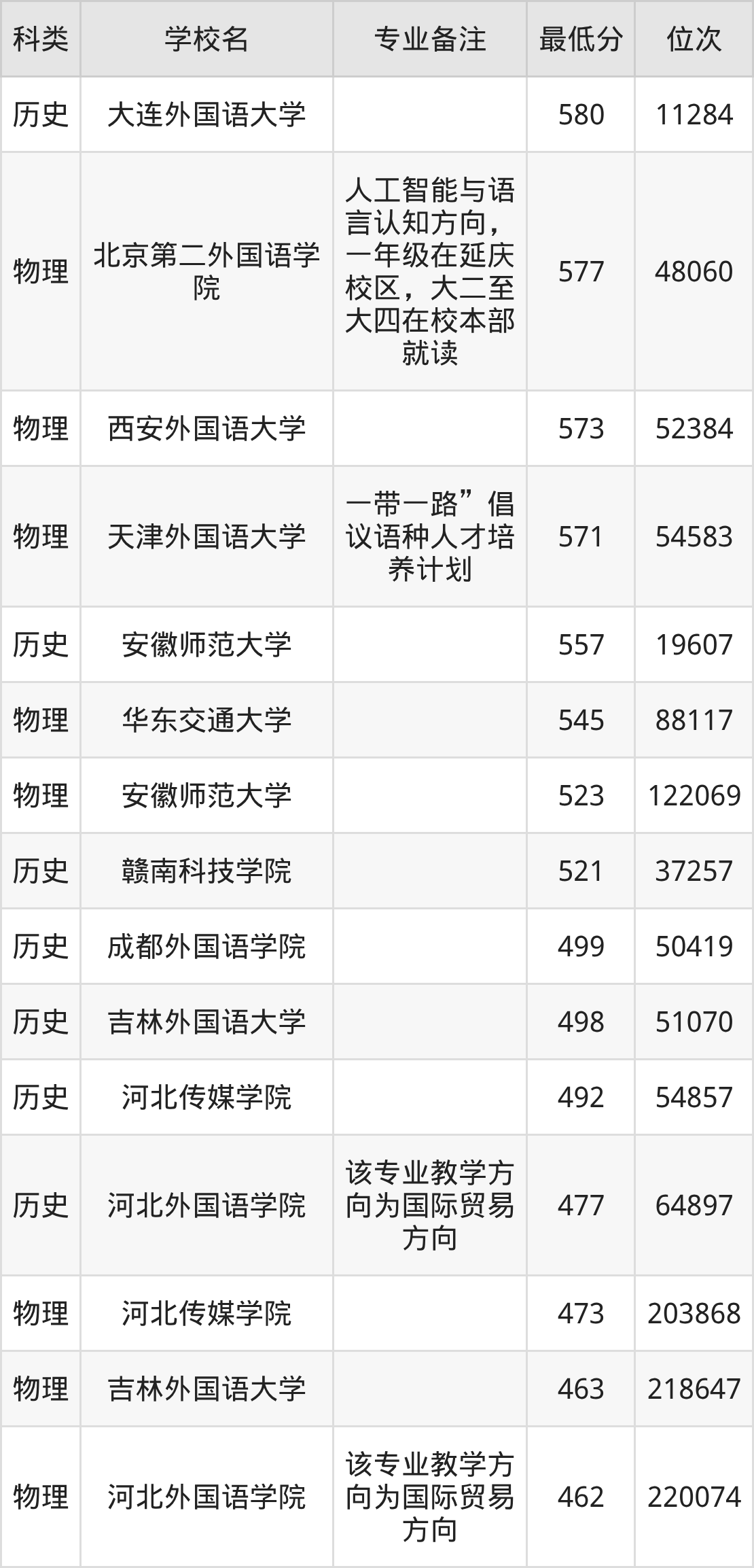 下面是2025年葡萄牙语录取分数线Top15一览表: