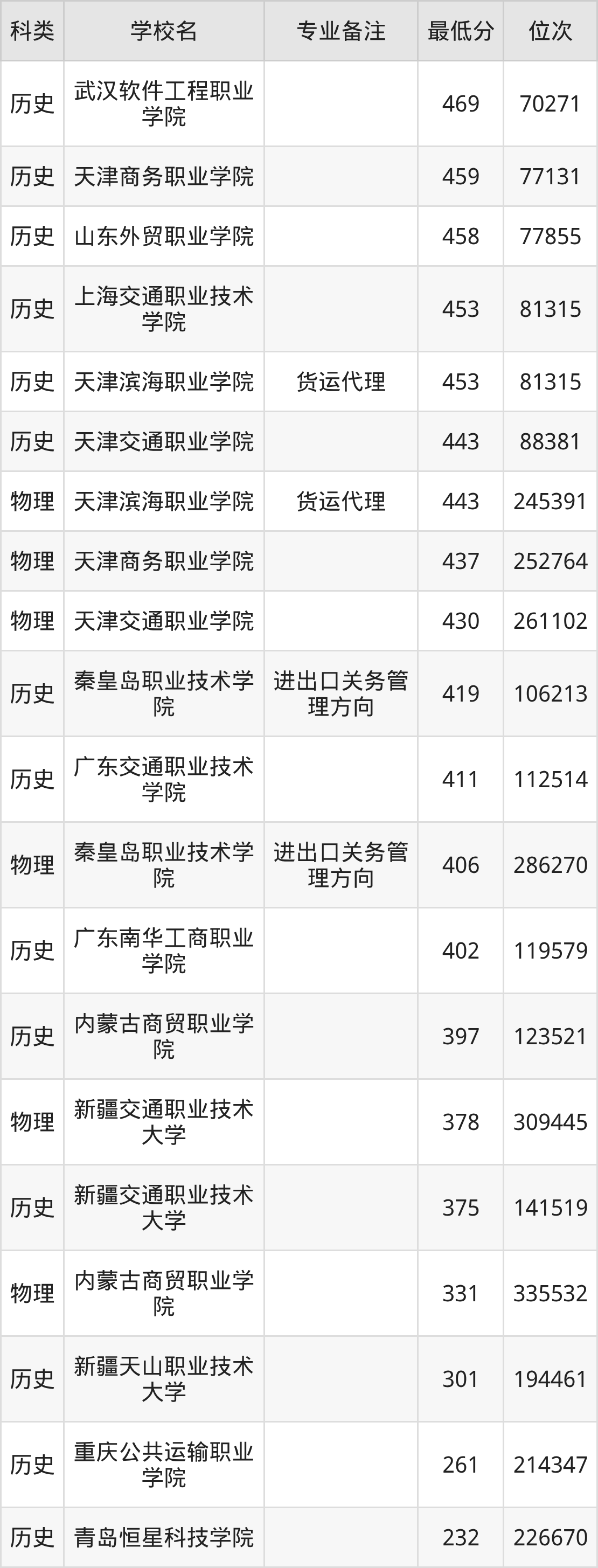 关务与外贸服务专业分数最低的民办大学是重庆公共运输职业学院,其2025年最低分为221分,考生只要超专科线21分即有概率能被录取。