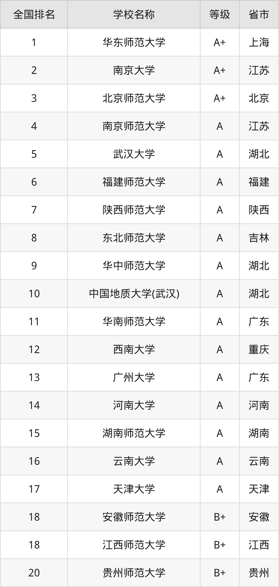 1、华东师范大学(A+级)