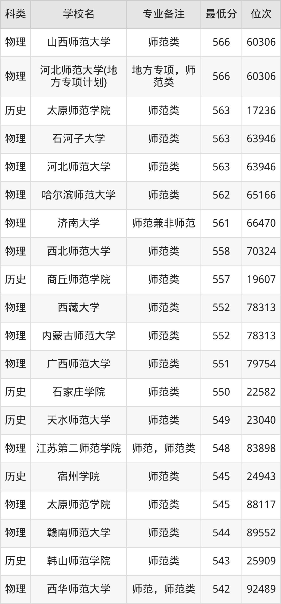 下面是2025年地理科学录取分数线Top79一览表: