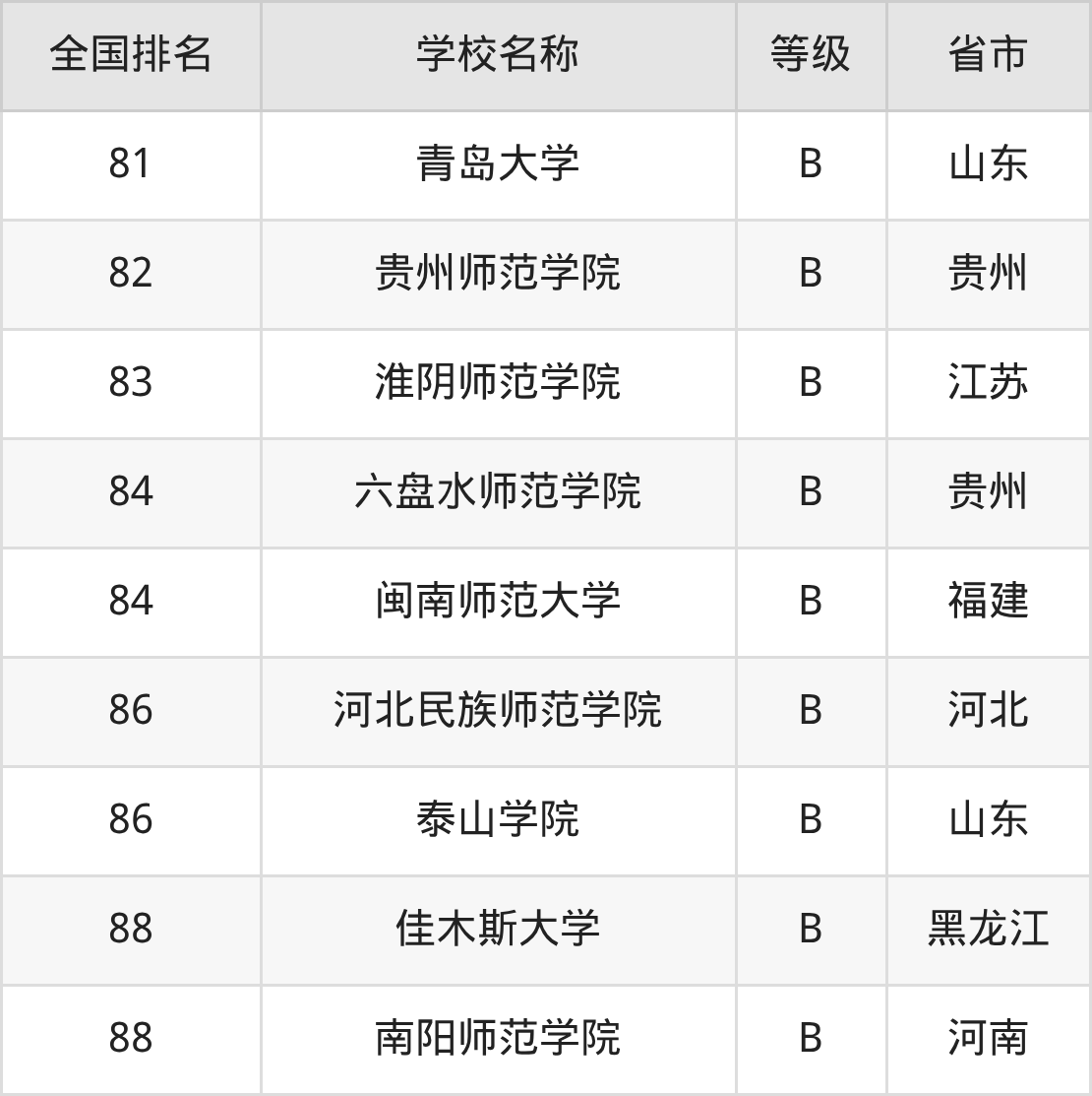 最新排名表可直接见下:
