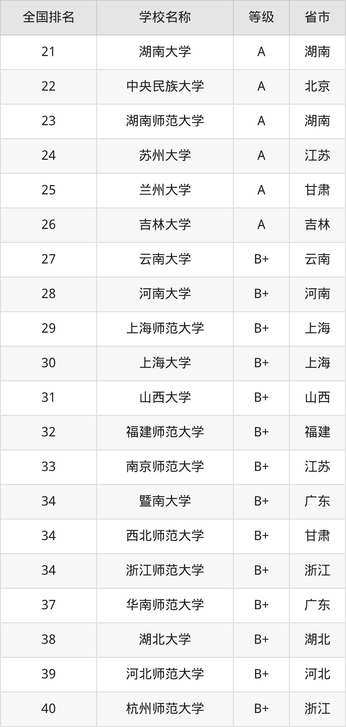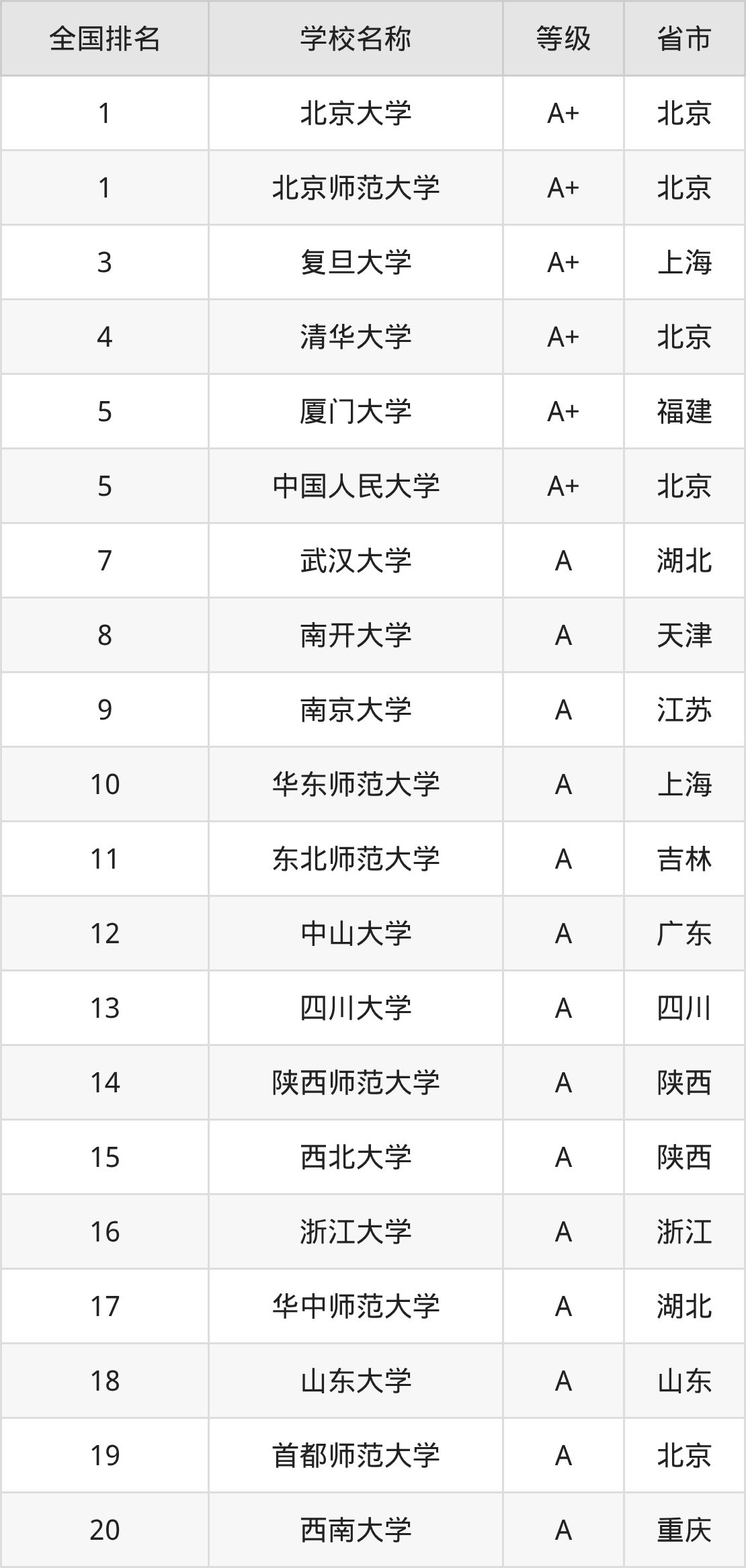 下面是历史学专业全国排名前10的大学名单及实力评级: