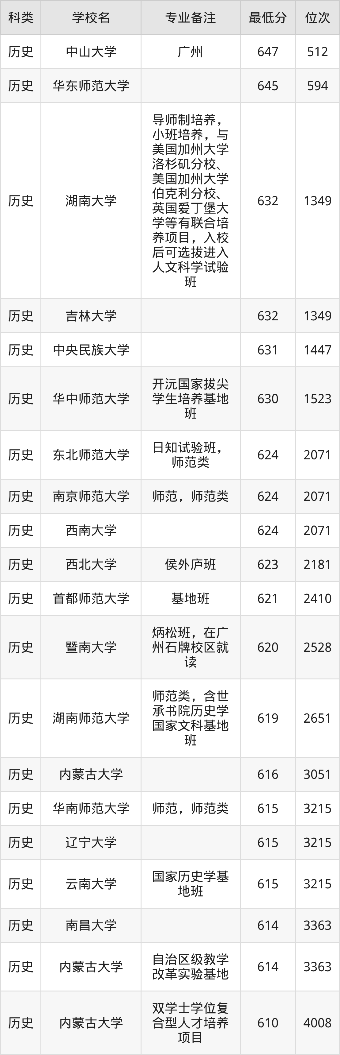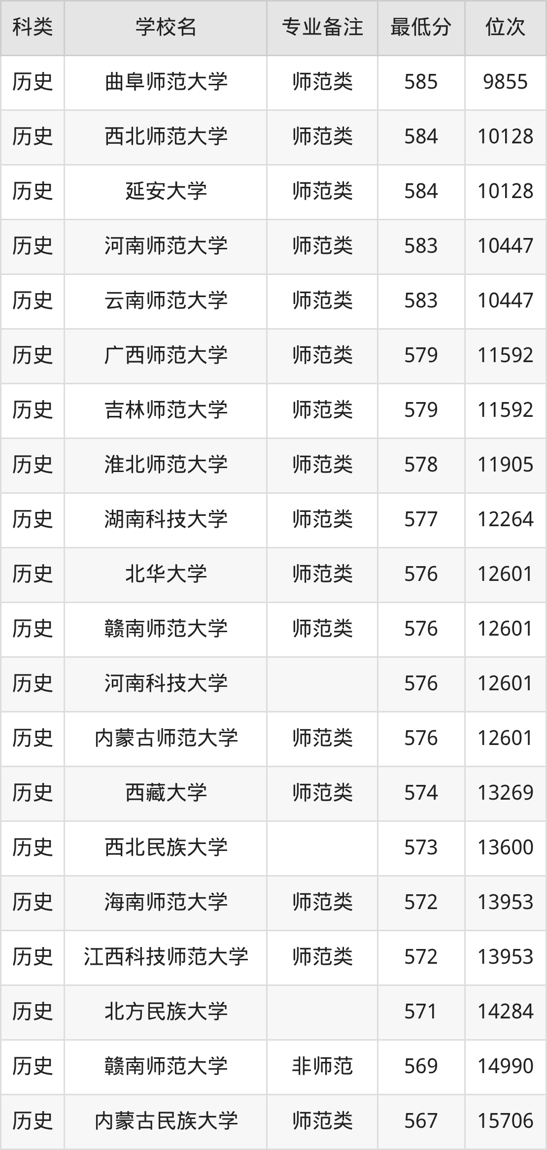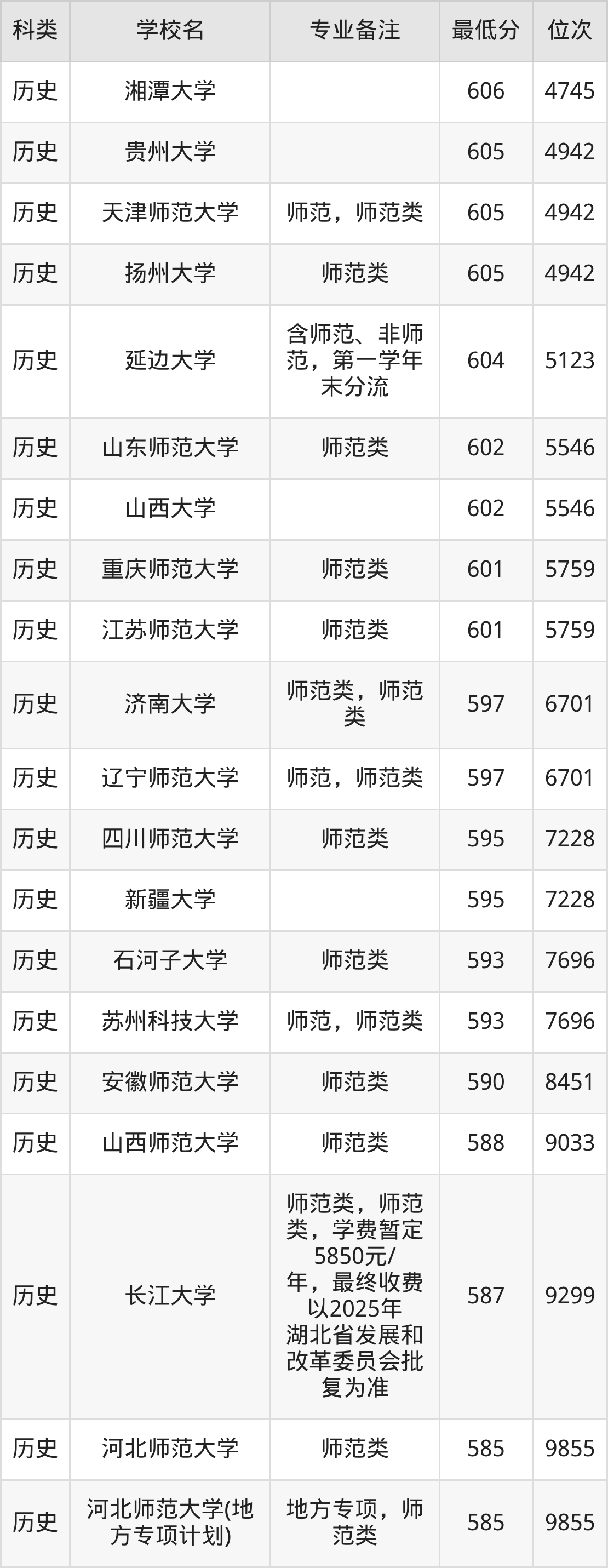 2025年全国大学历史学录取分数线在467分~647分之间。数据显示,考生如果想报考公办大学,分数要在514分及以上,最低分院校有邢台学院等。