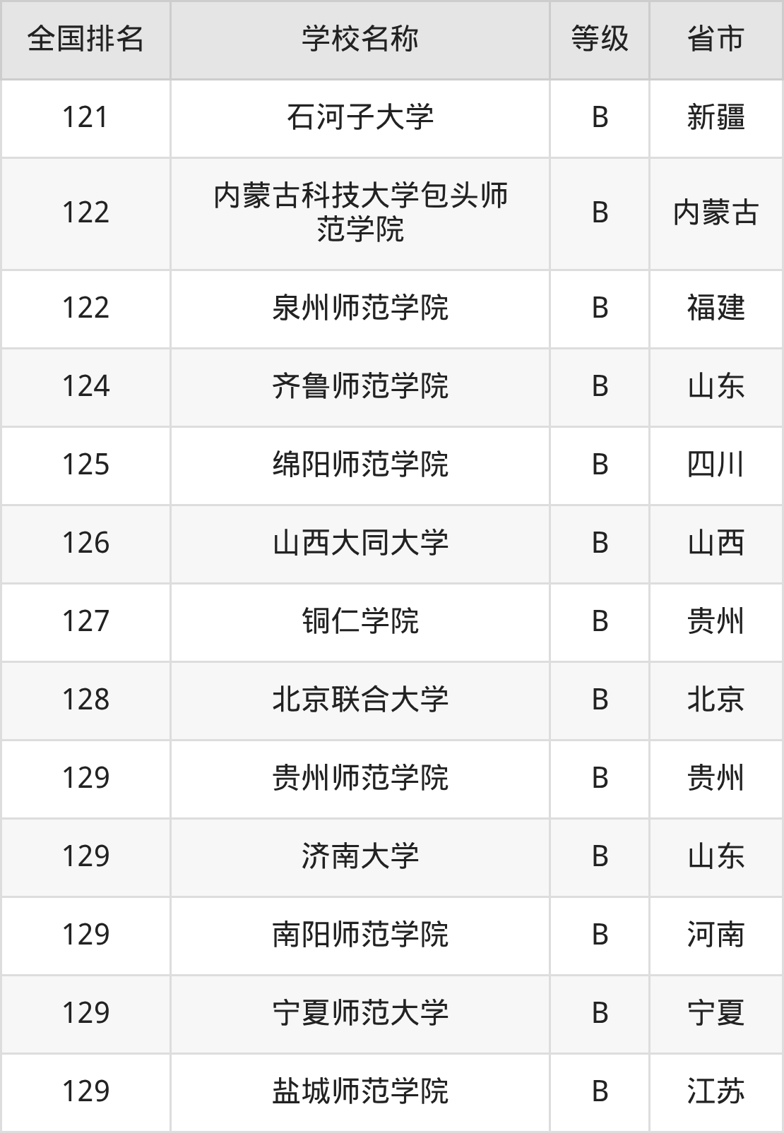 全国历史学开设院校参与排名的共有133所,实力最强的是北京大学(全国排名第1名),其专业实力等级被评为A+级。