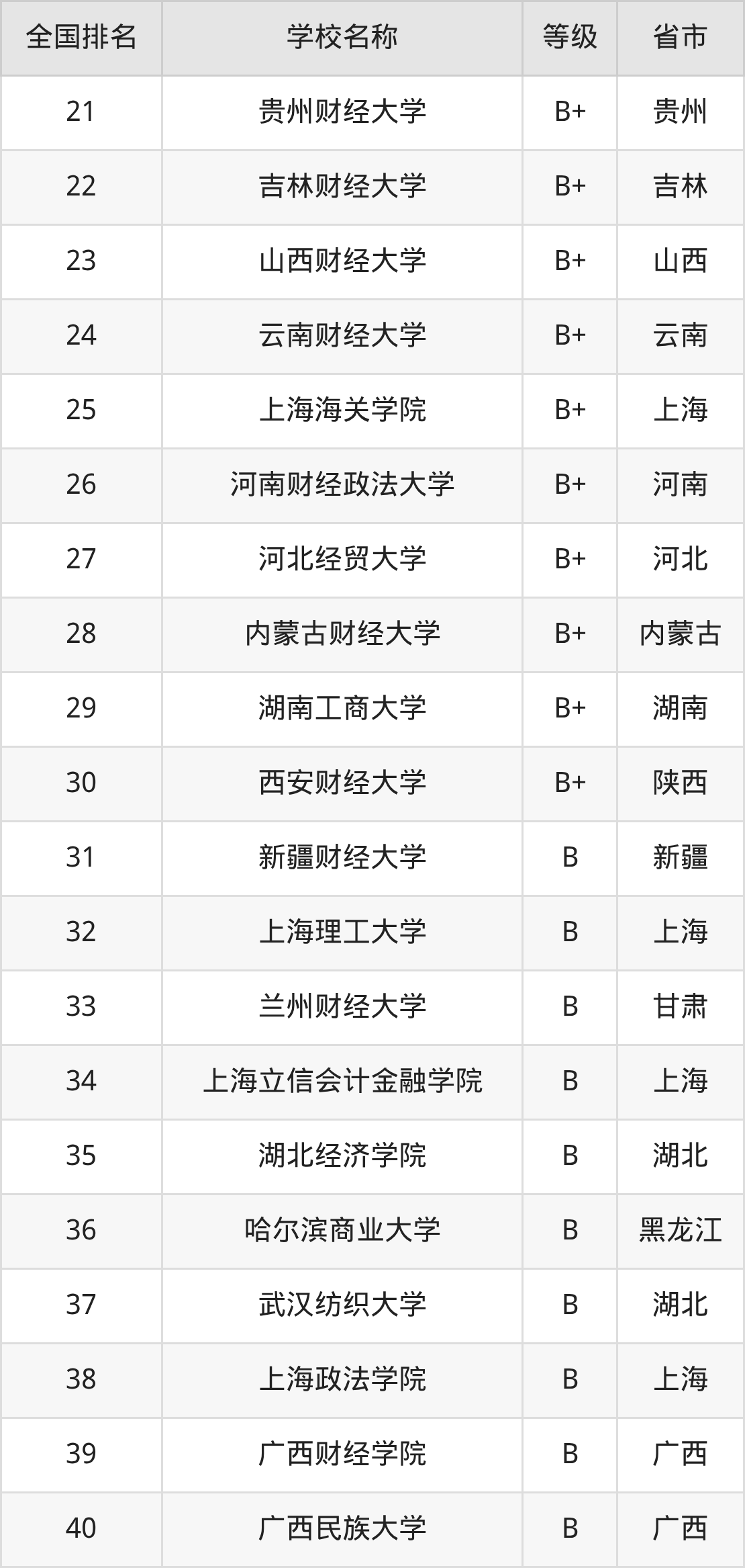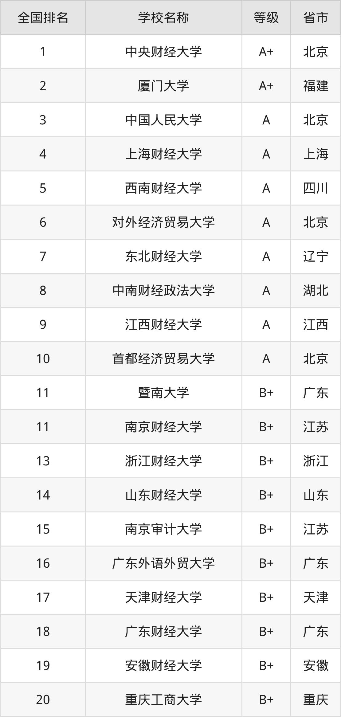 1、中央财经大学(A+级)