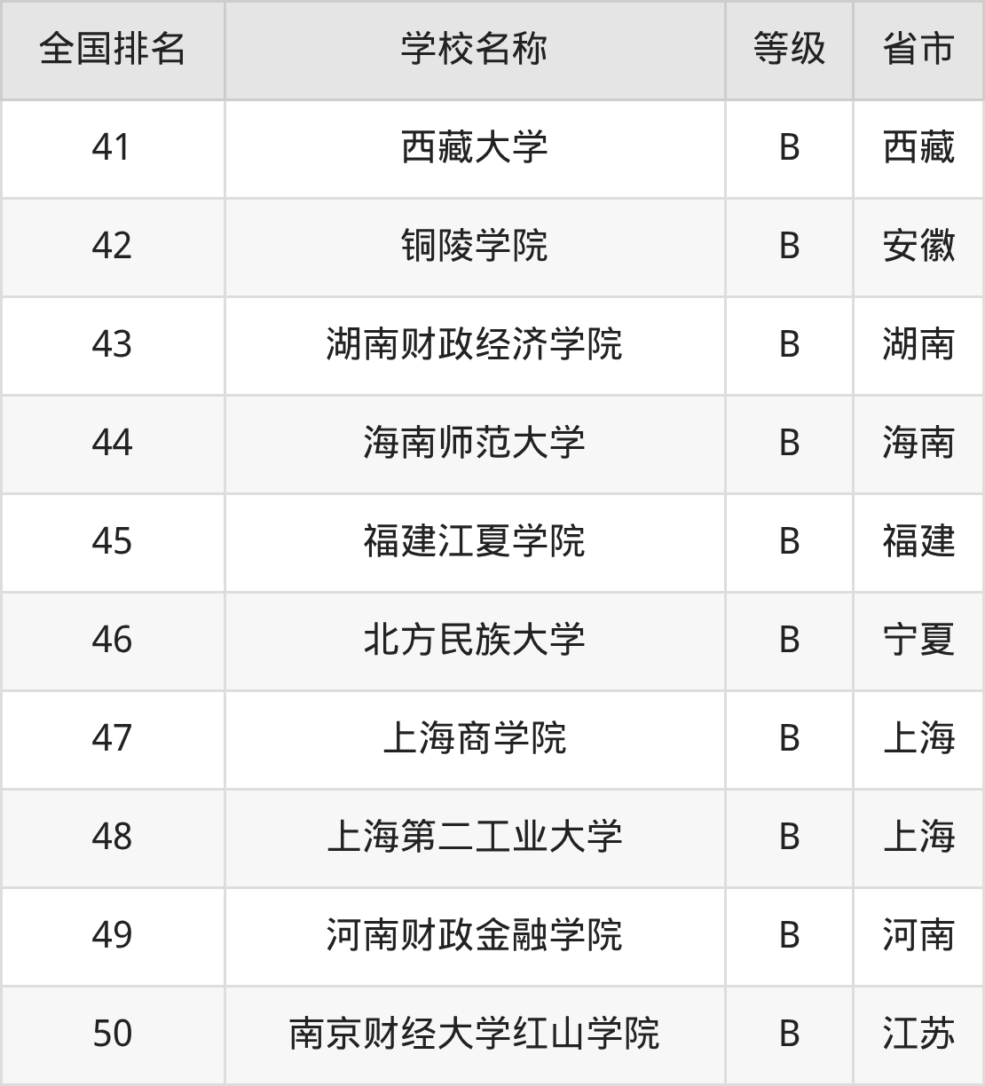 最新排名表可直接见下: