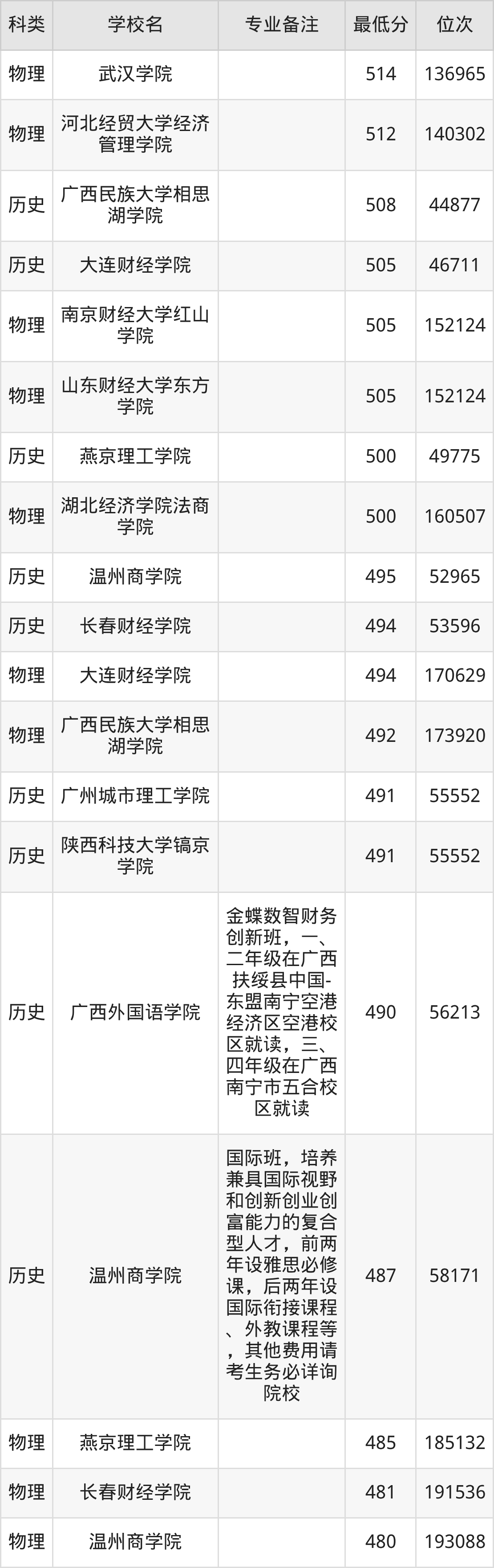 税收学专业分数最低的民办大学是温州商学院,其2025年最低分为480分,考生只要超本科线21分即有概率能被录取。