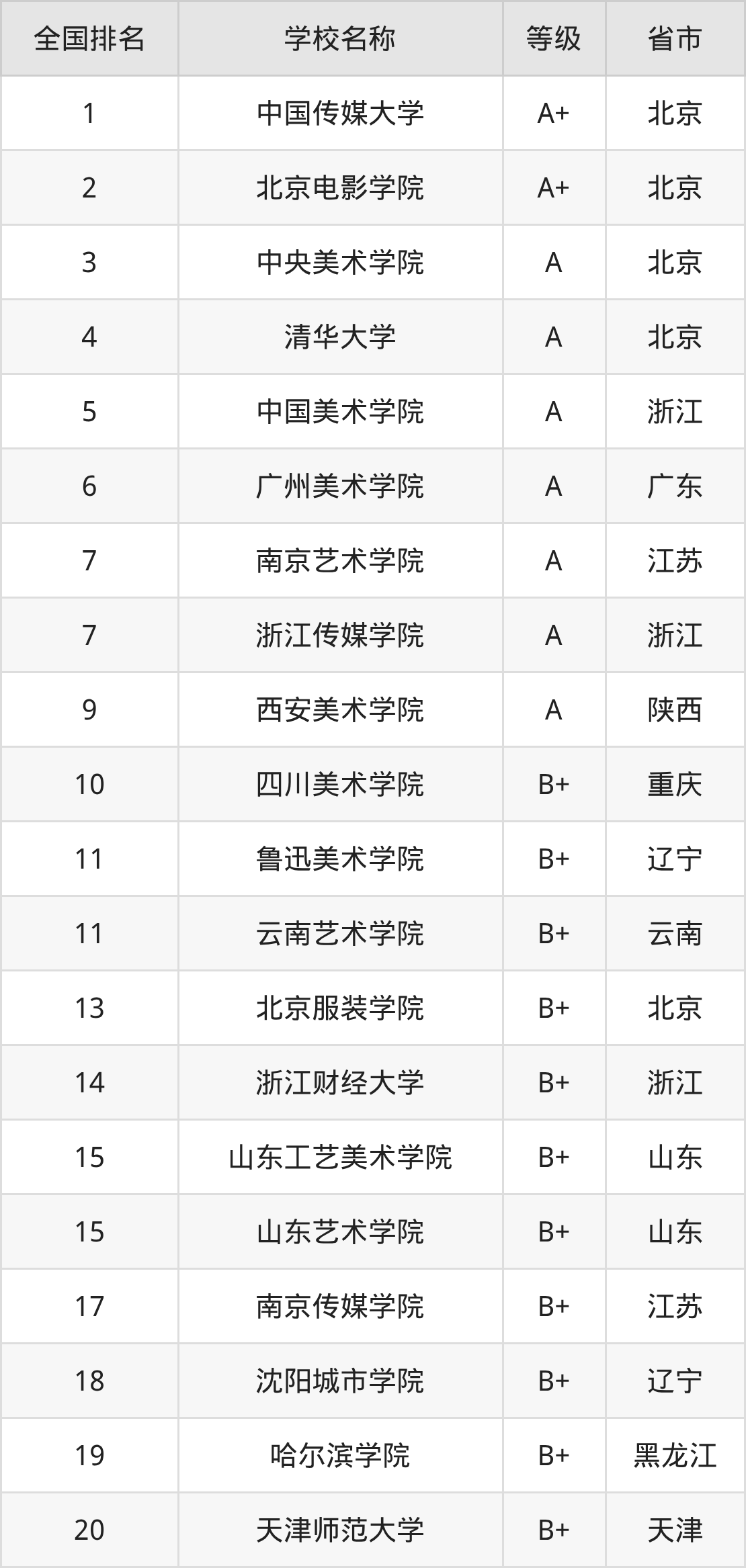 下面是摄影专业全国排名前10的大学名单及实力评级: