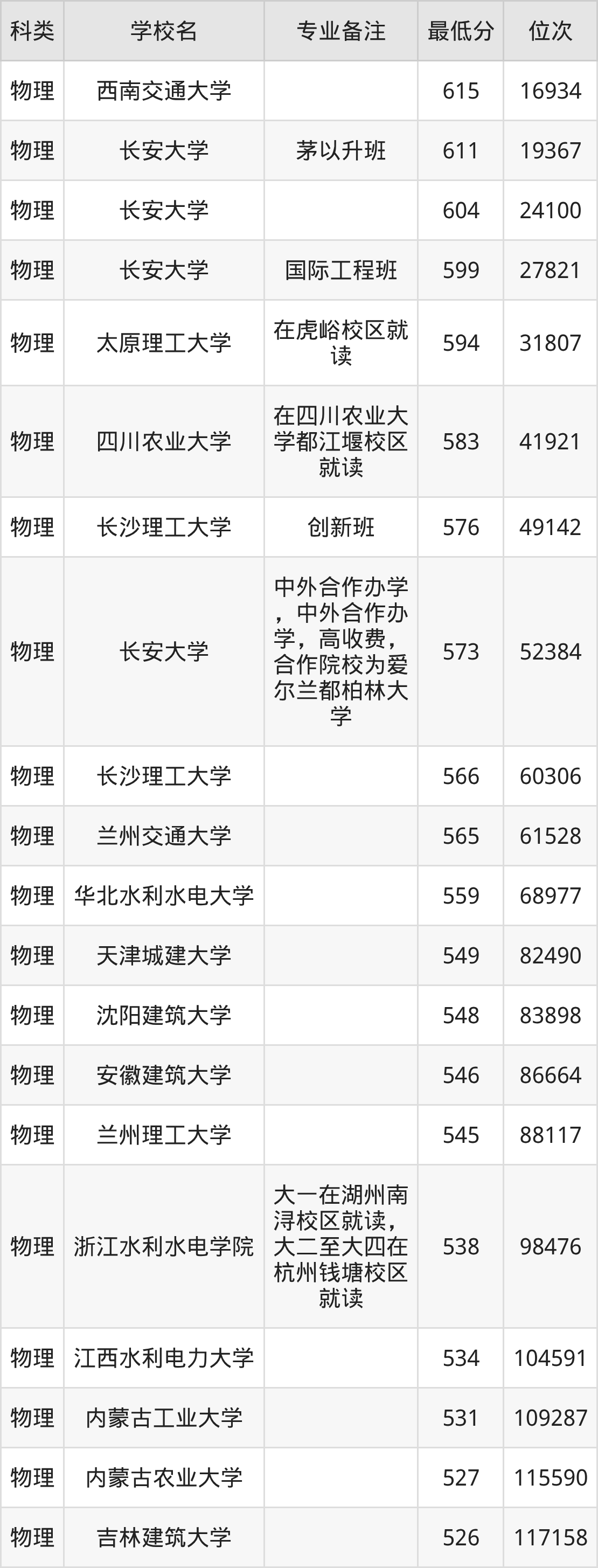 2025年全国大学道路桥梁与渡河工程录取分数线在460分~615分之间。数据显示,考生如果想报考公办大学,分数要在500分及以上,最低分院校有喀什大学等。