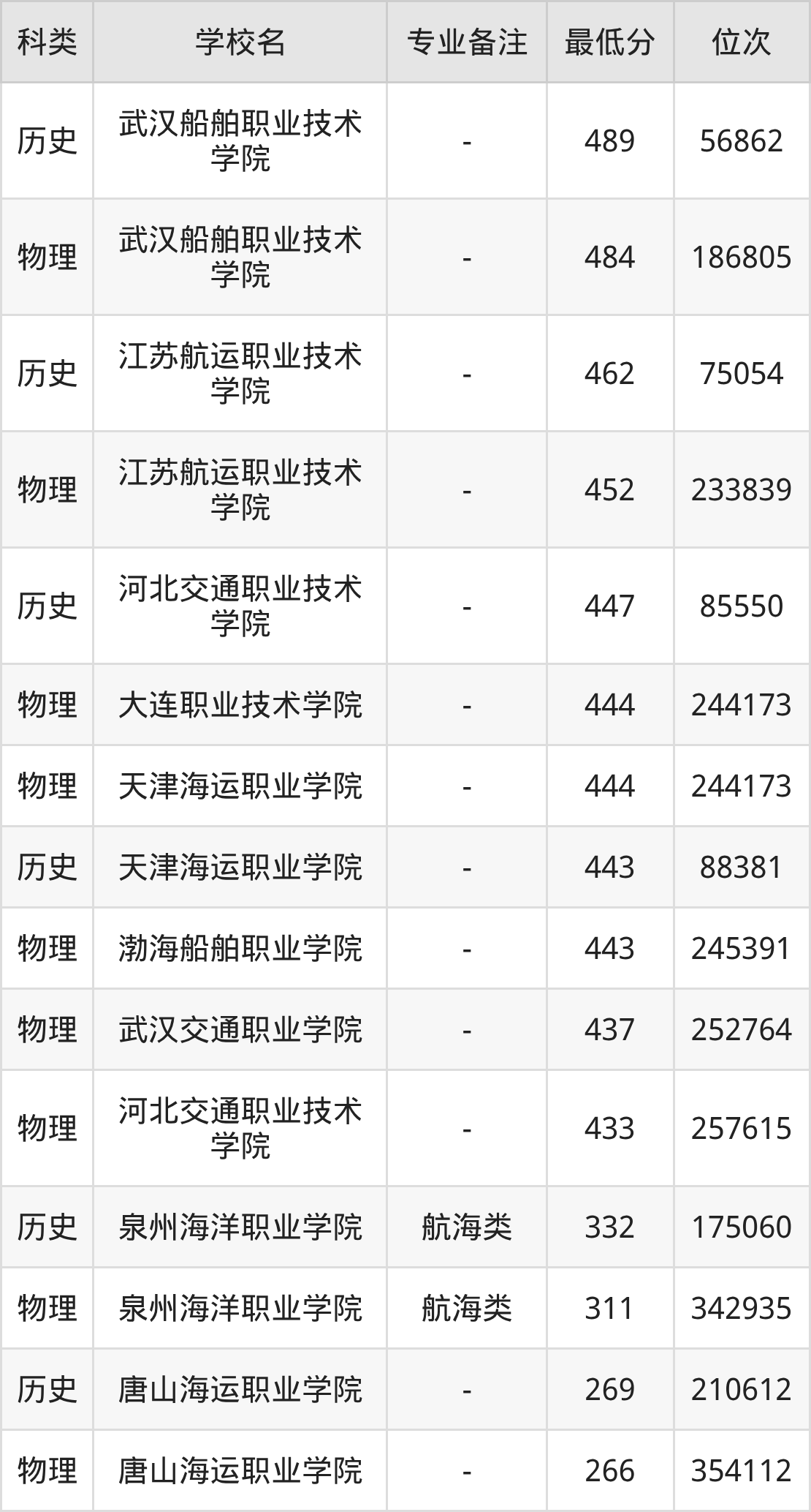 下面是2025年船舶工程技术录取分数线Top15一览表:
