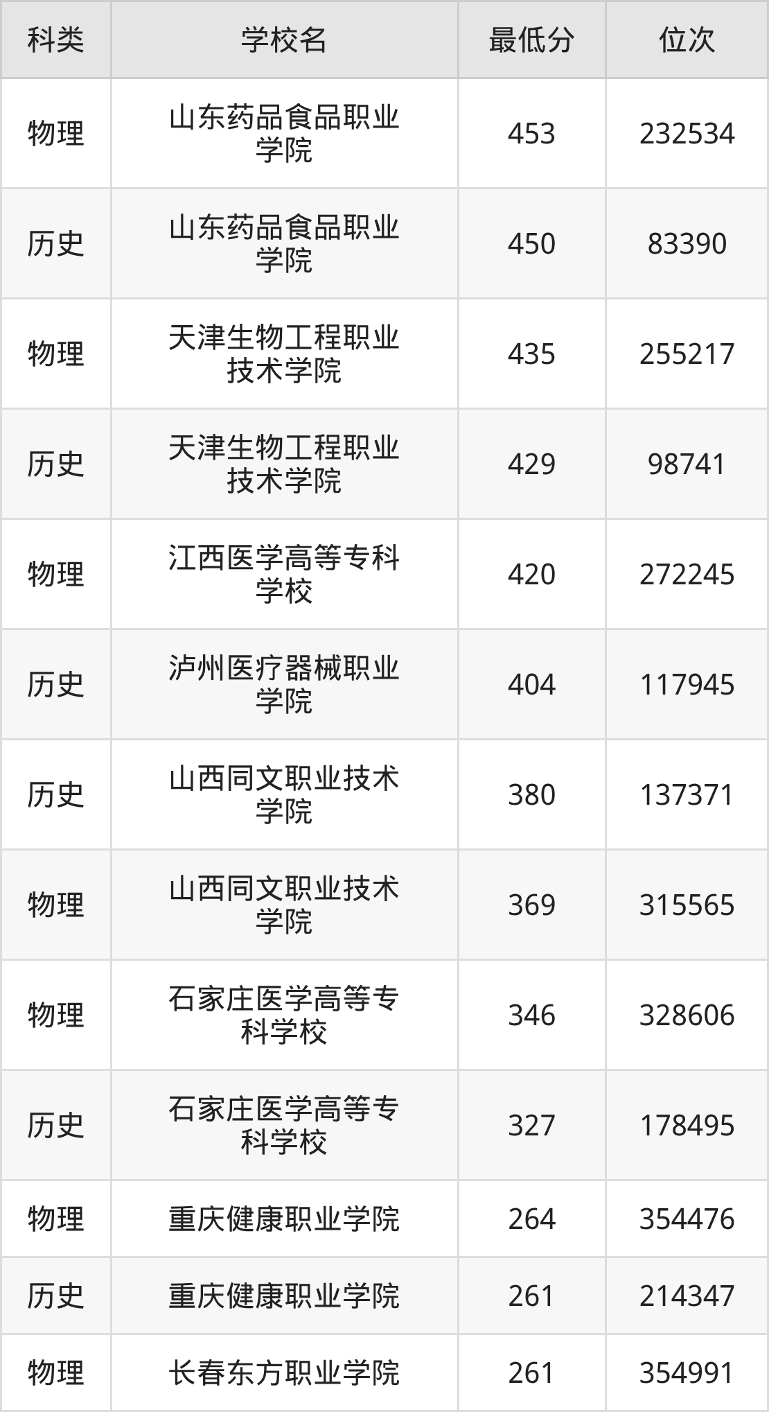 下面是2025年医疗器械维护与管理录取分数线Top13一览表: