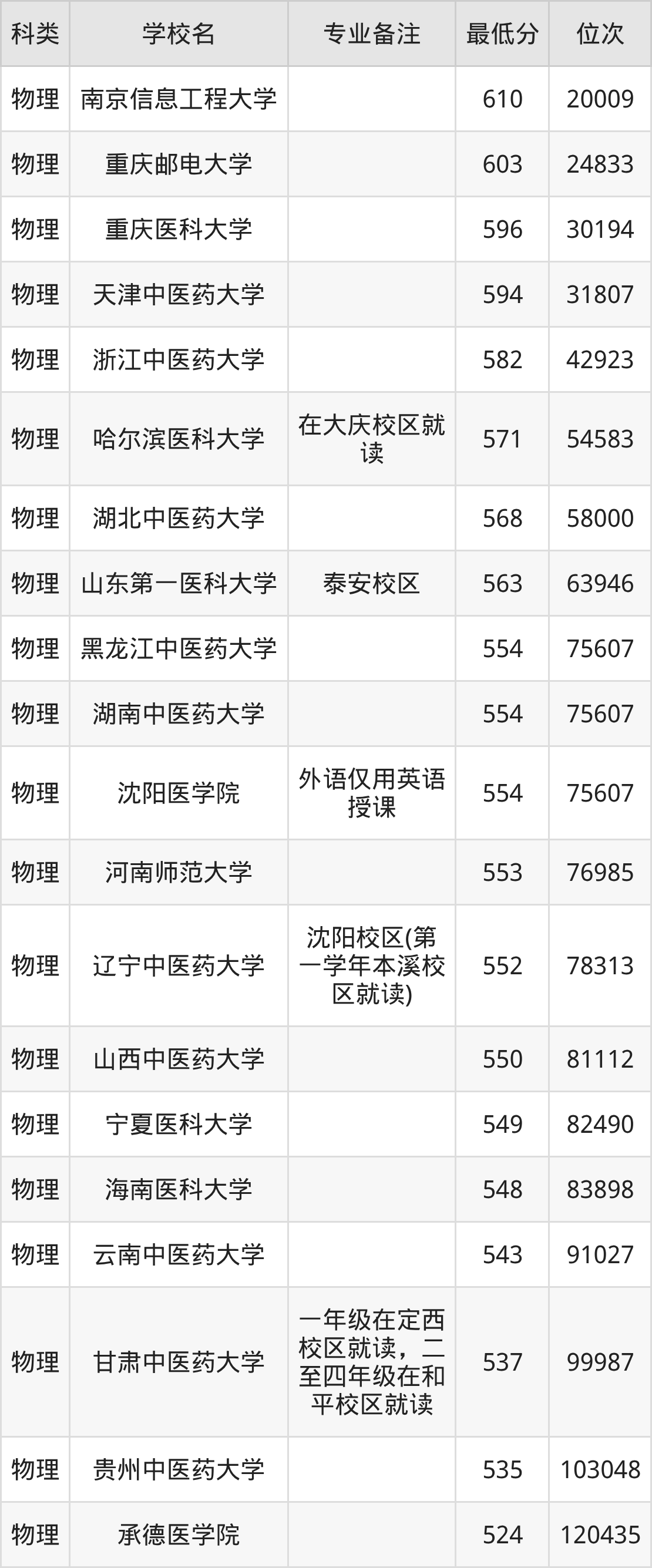 2025年全国大学医学信息工程录取分数线在459分~610分之间。数据显示,考生如果想报考公办大学,分数要在500分及以上,最低分院校有新疆理工学院、新疆科技学院等。
