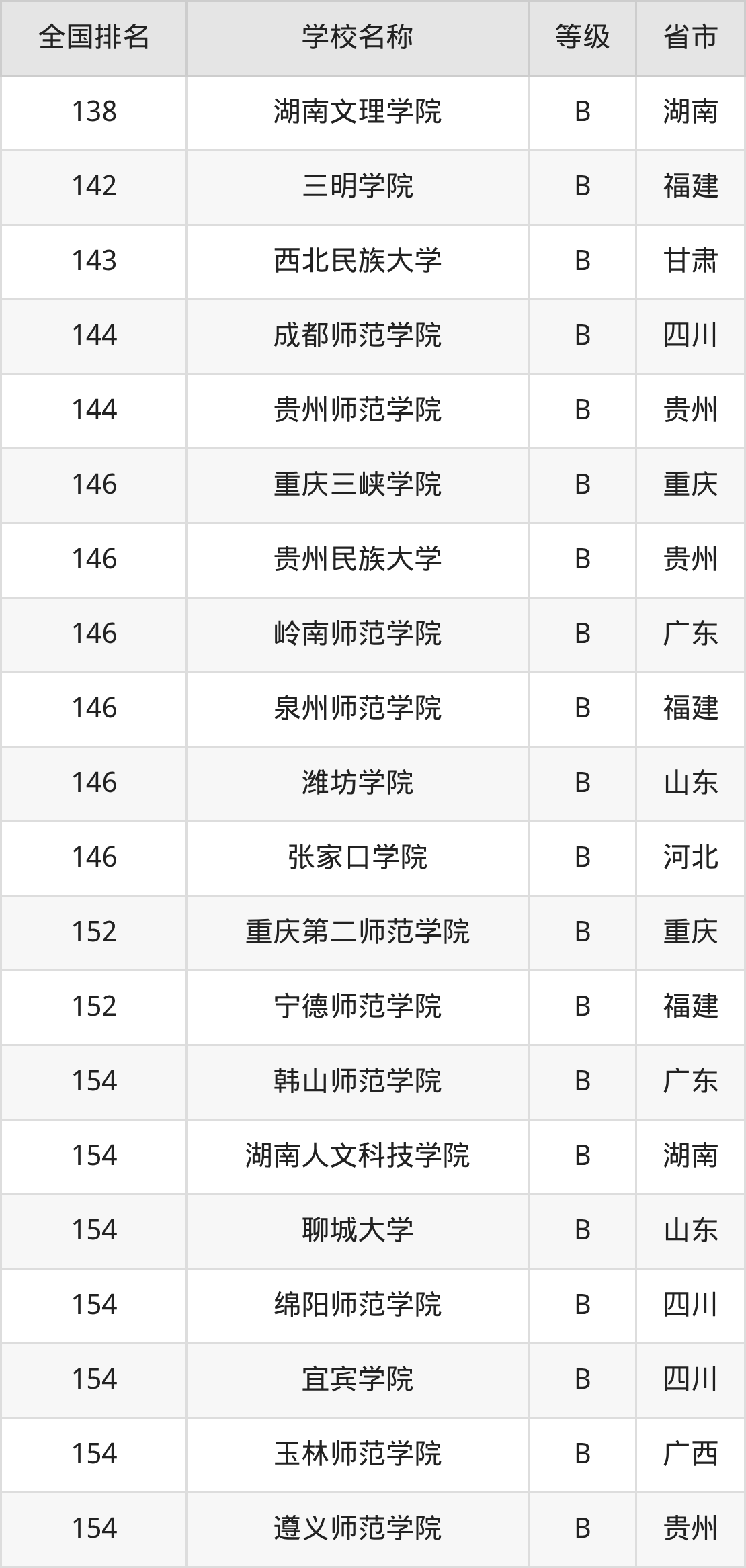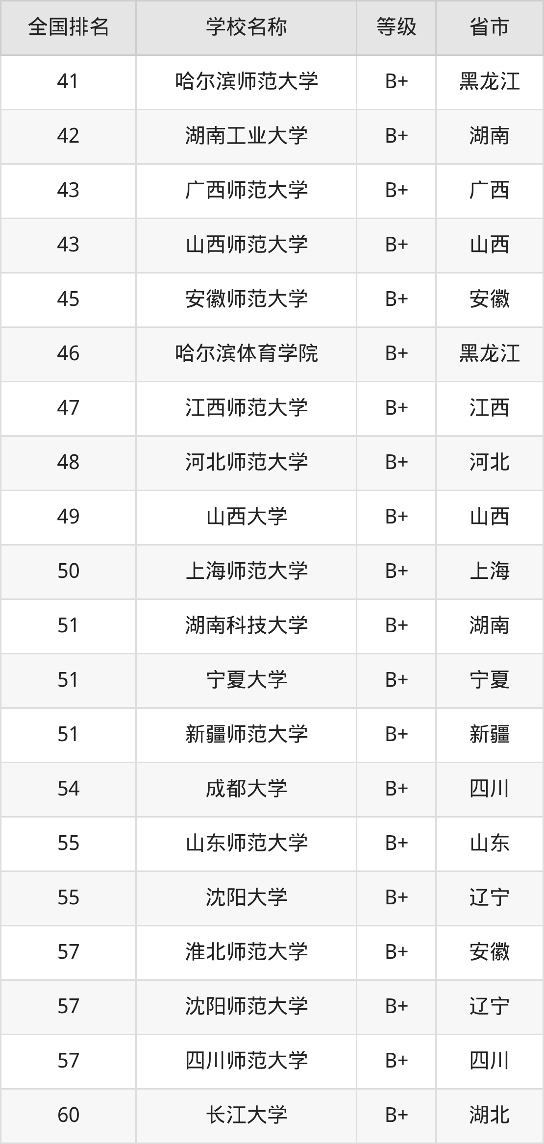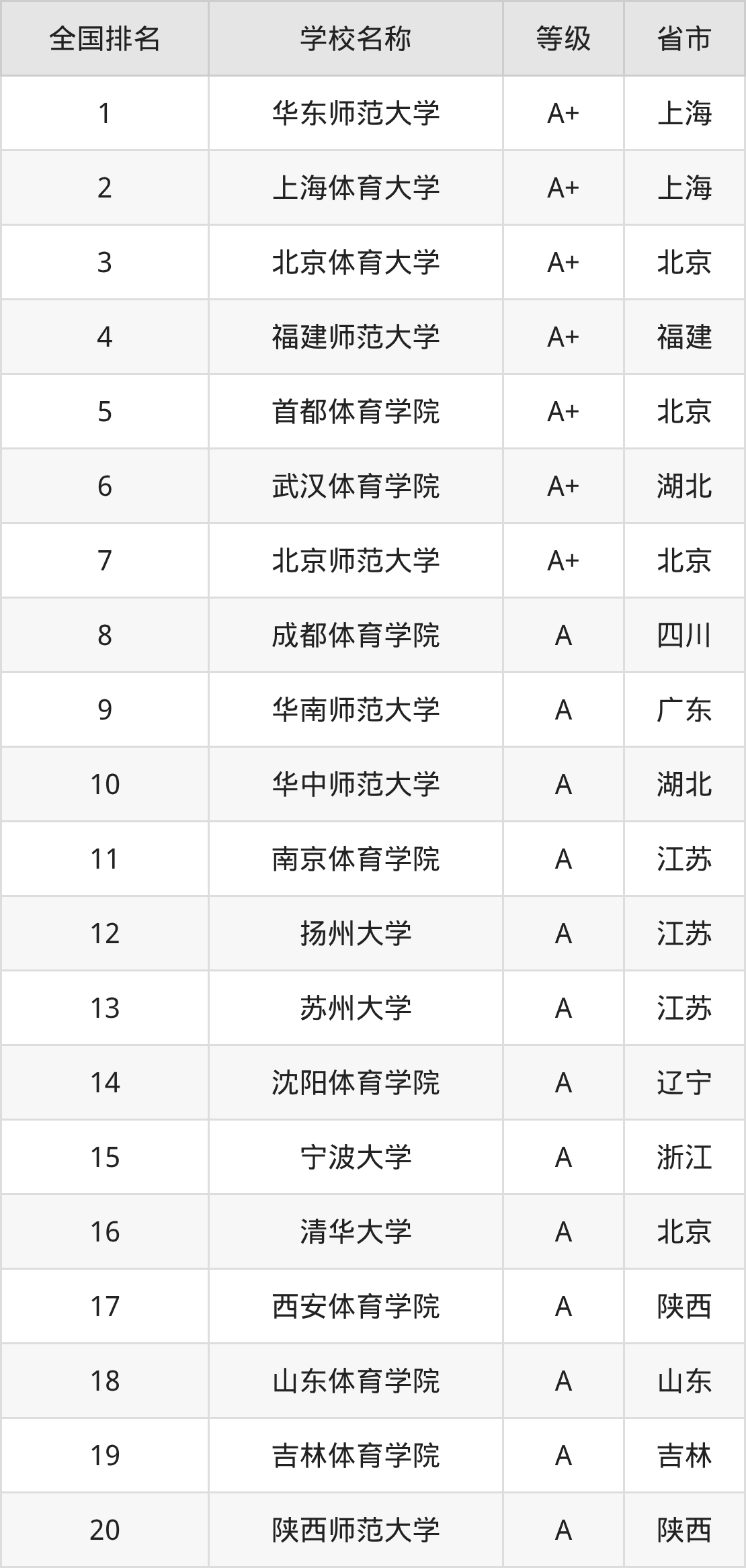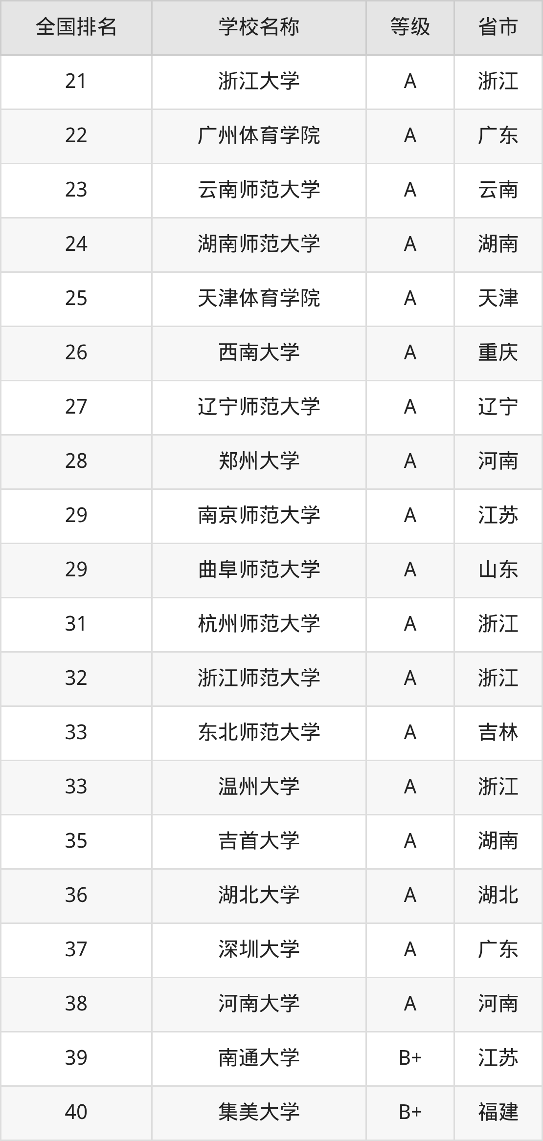 下面是体育教育专业全国排名前10的大学名单及实力评级: