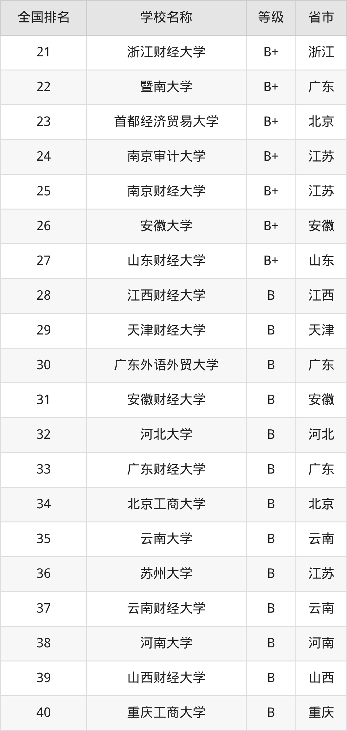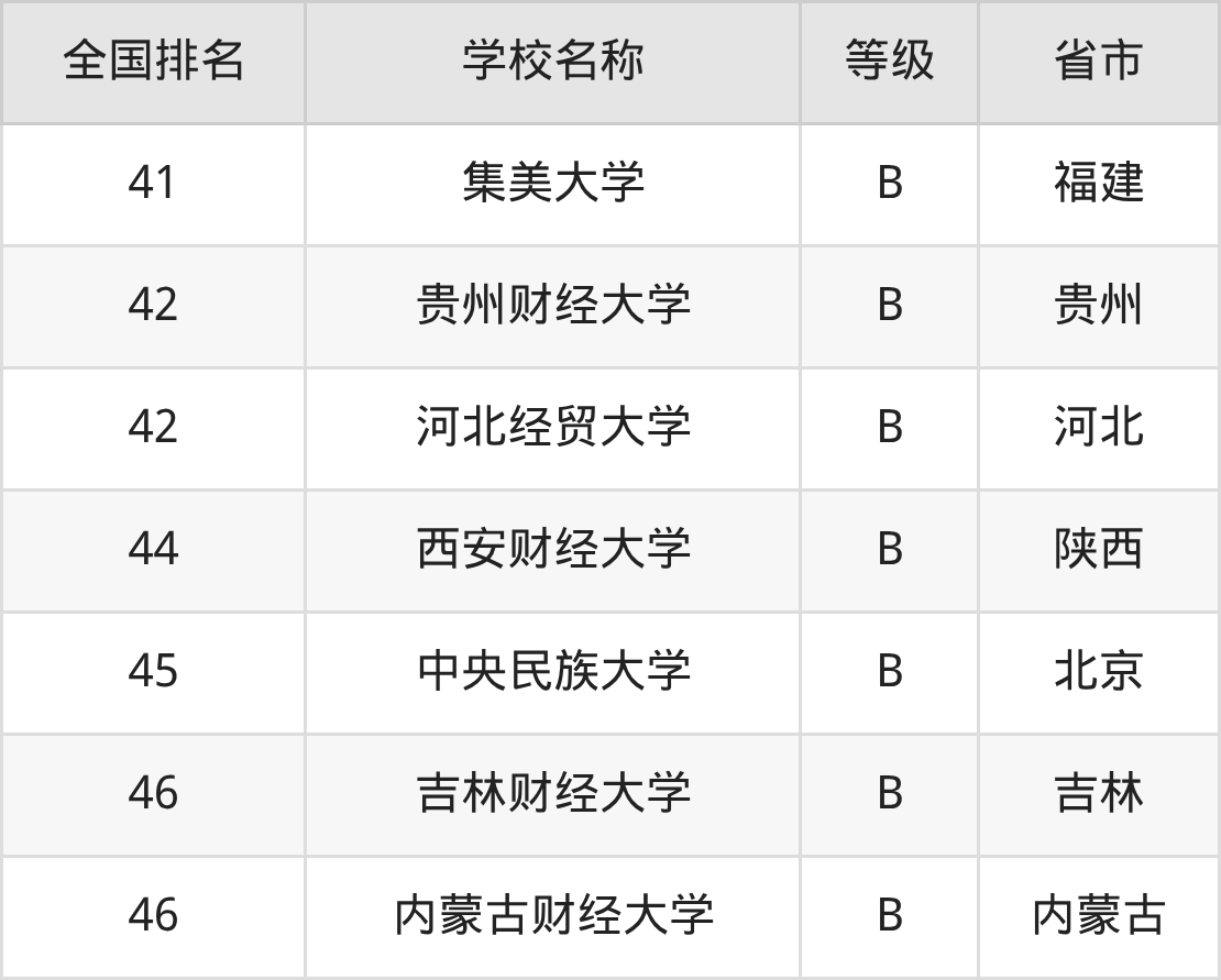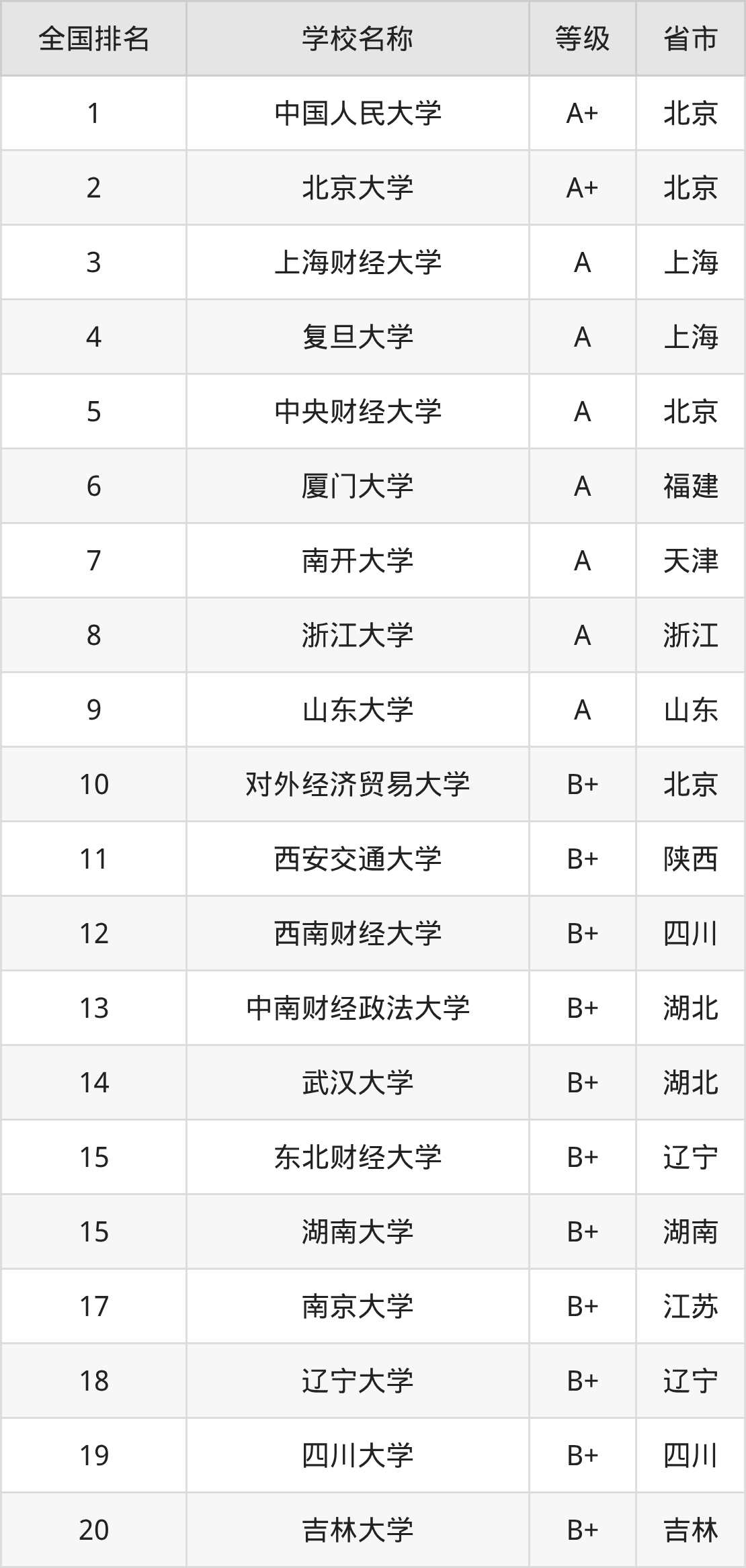 下面是财政学专业全国排名前10的大学名单及实力评级: