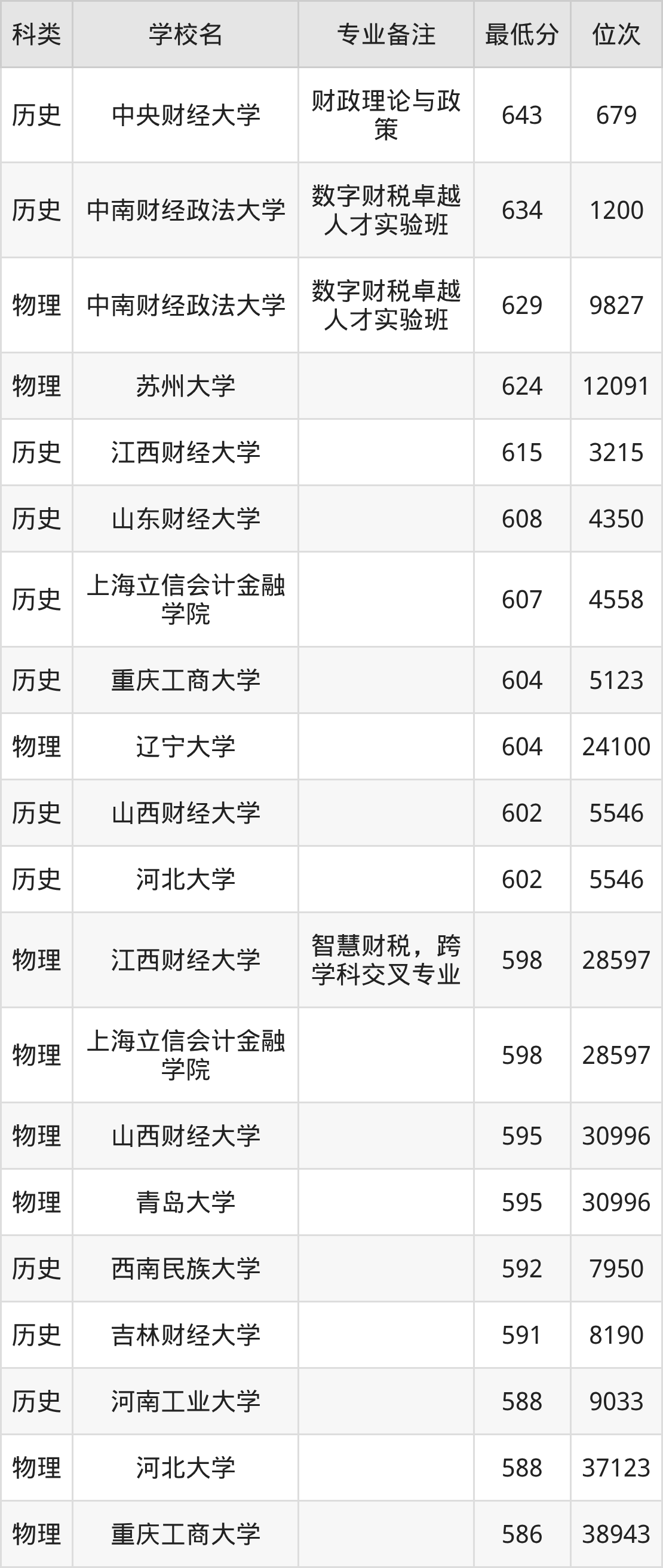 2025年全国大学财政学录取分数线在483分~643分之间。数据显示,考生如果想报考公办大学,分数要在534分及以上,最低分院校有吉林工商学院等。