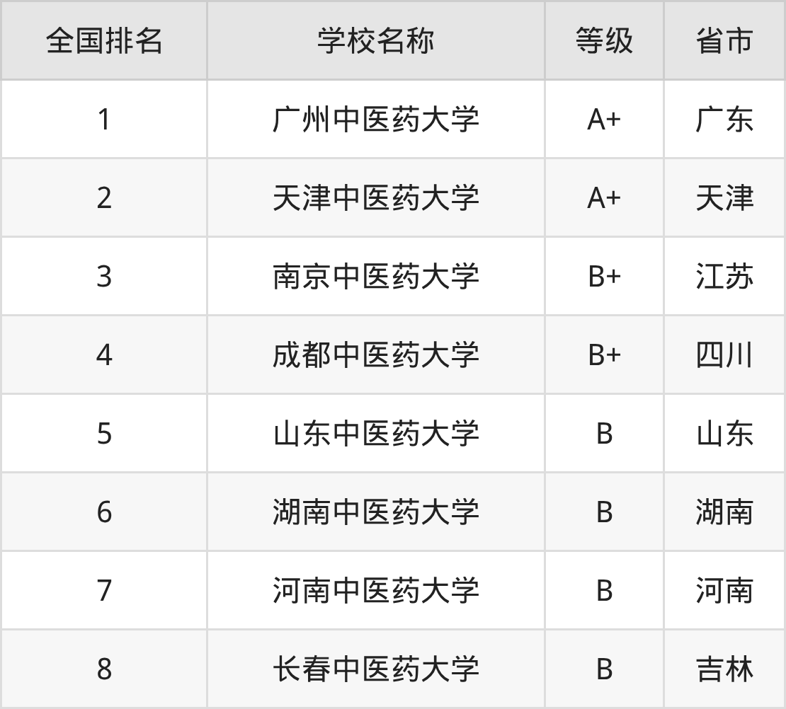 下面是中医养生学专业全国排名前8的大学名单及实力评级: