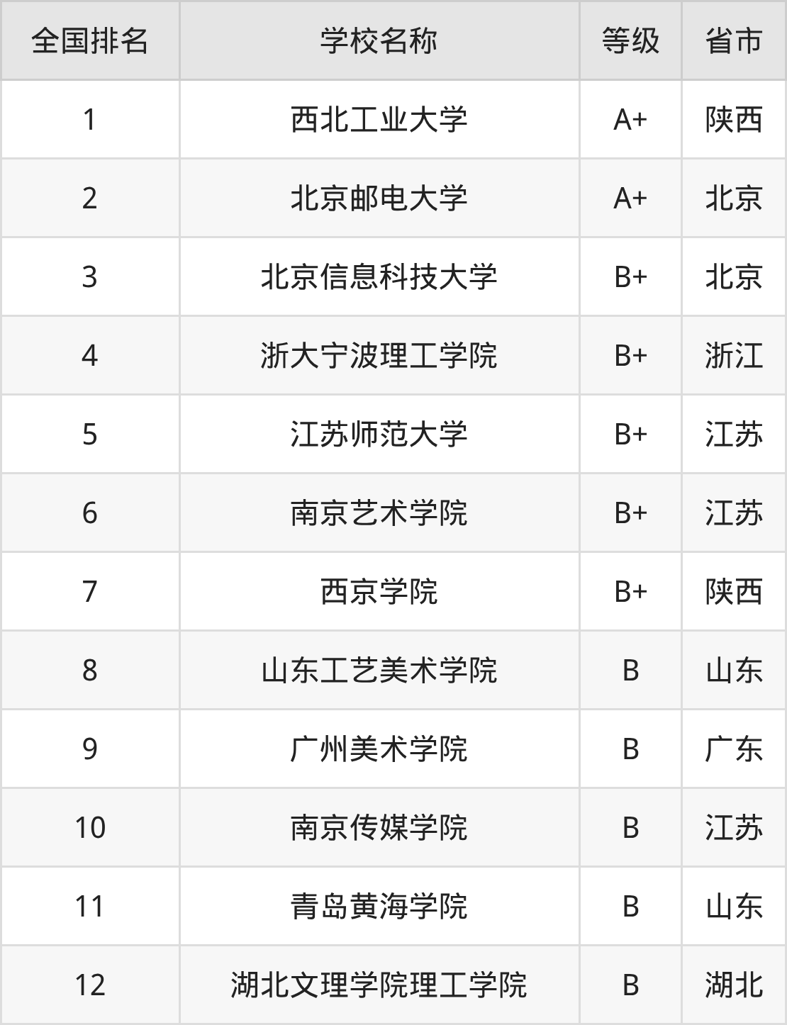 全国智能交互设计开设院校参与排名的共有12所,实力最强的是西北工业大学(全国排名第1名),其专业实力等级被评为A+级。