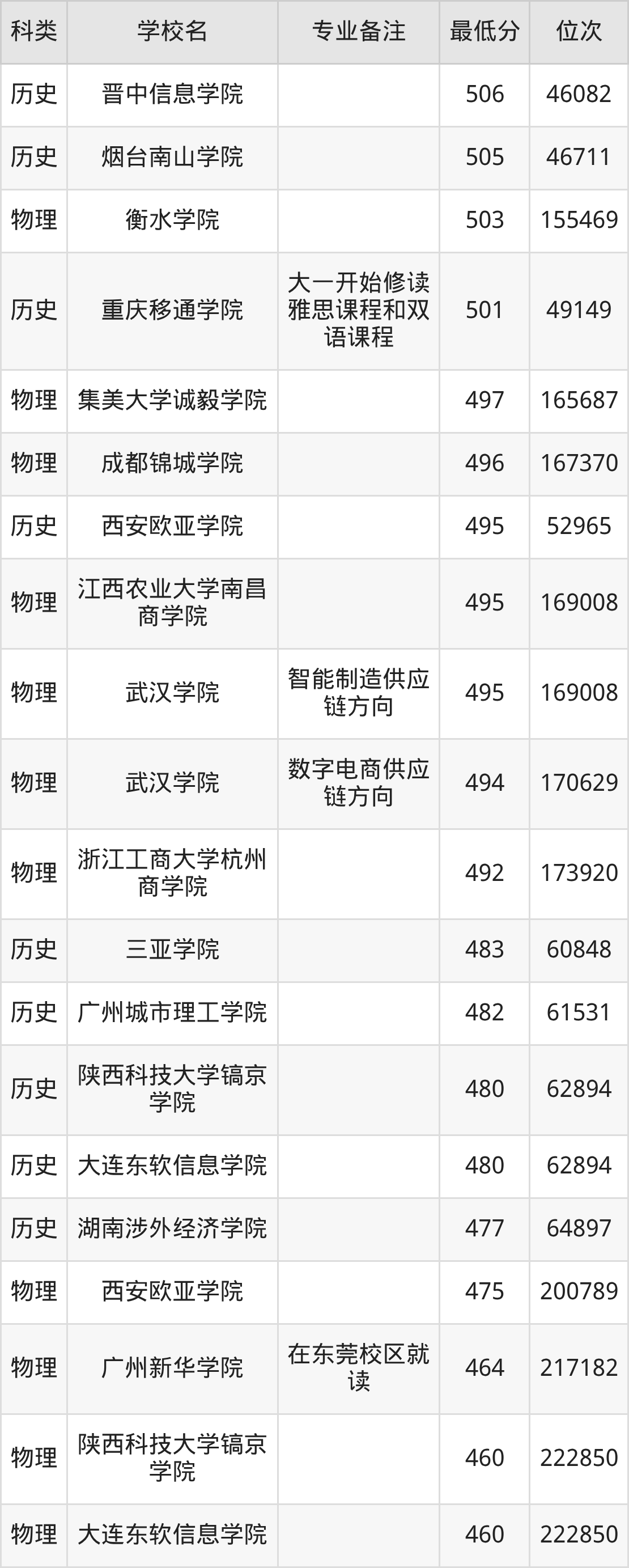 供应链管理专业分数最低的民办大学是湖南涉外经济学院,其2025年最低分为459分,考生只要超本科线0分即有概率能被录取。