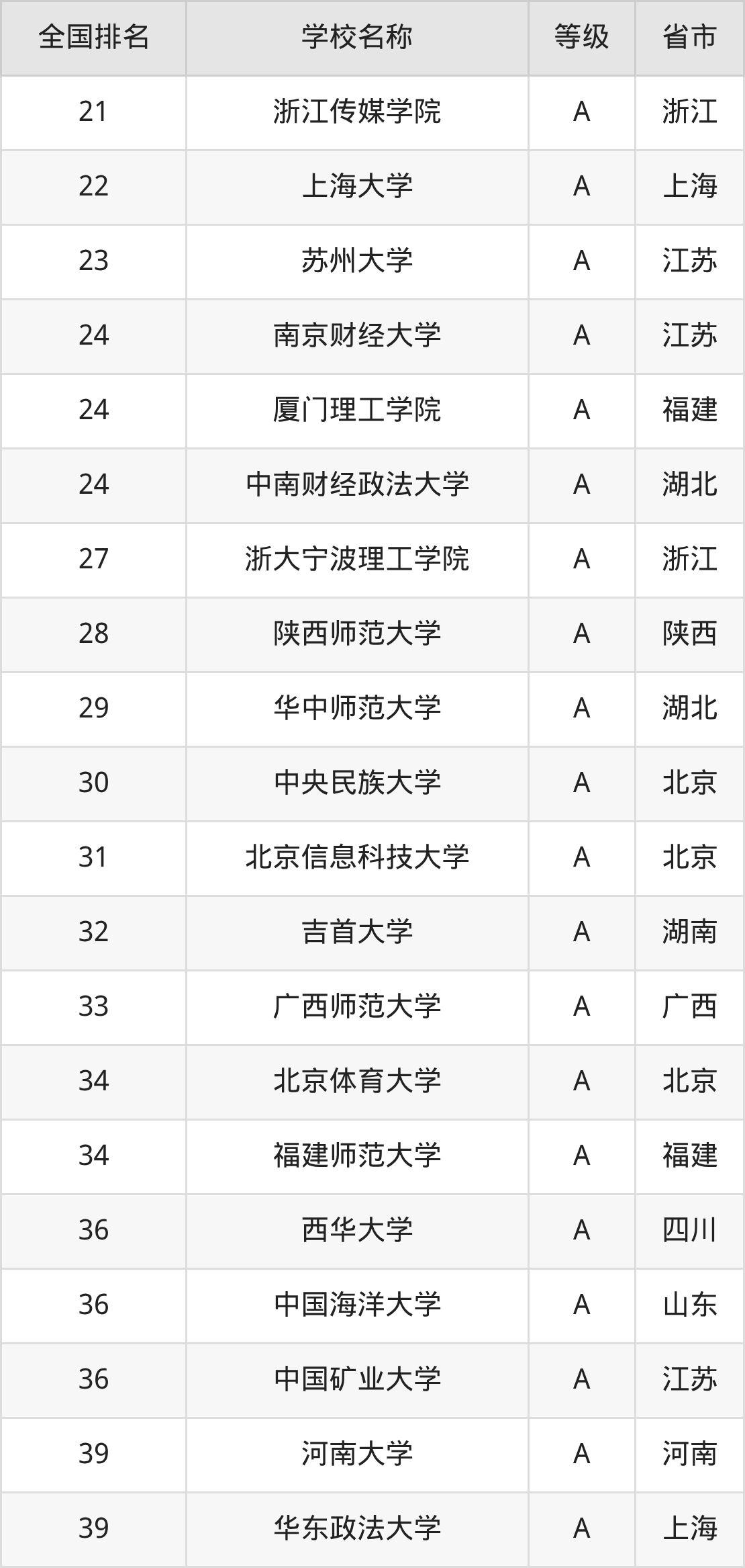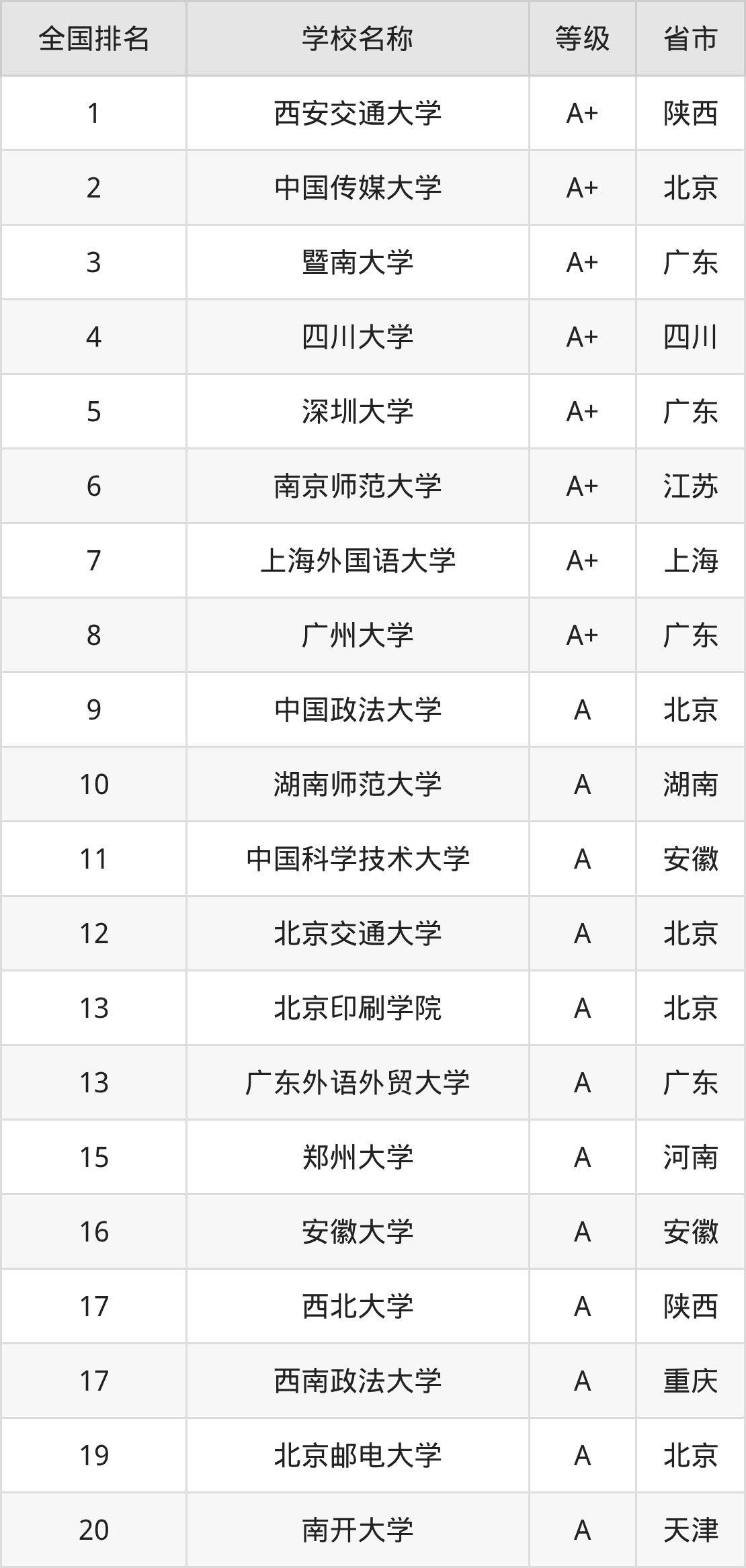下面是网络与新媒体专业全国排名前10的大学名单及实力评级: