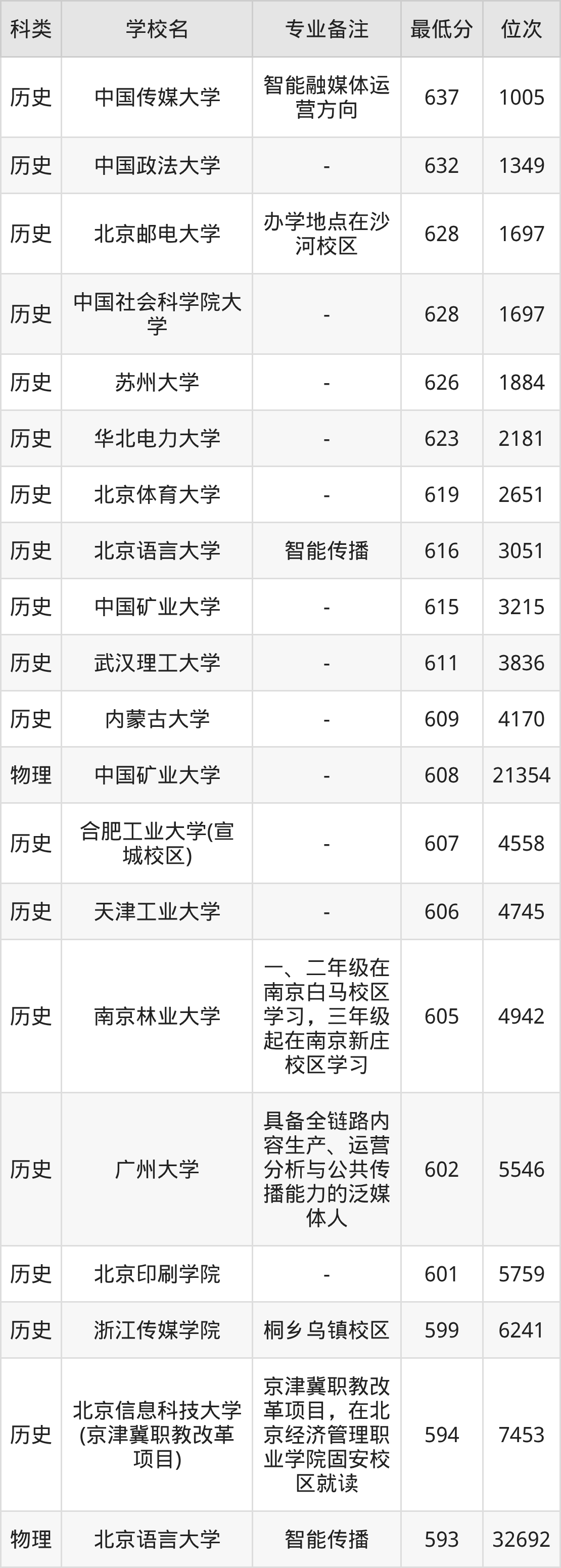 下面是2025年网络与新媒体录取分数线Top100一览表: