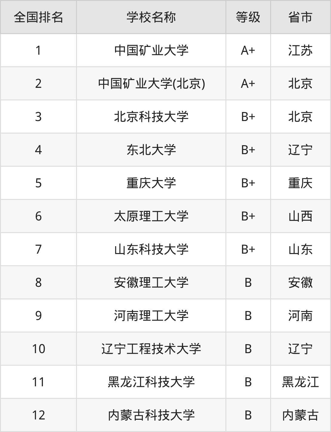 1、中国矿业大学(A+级)