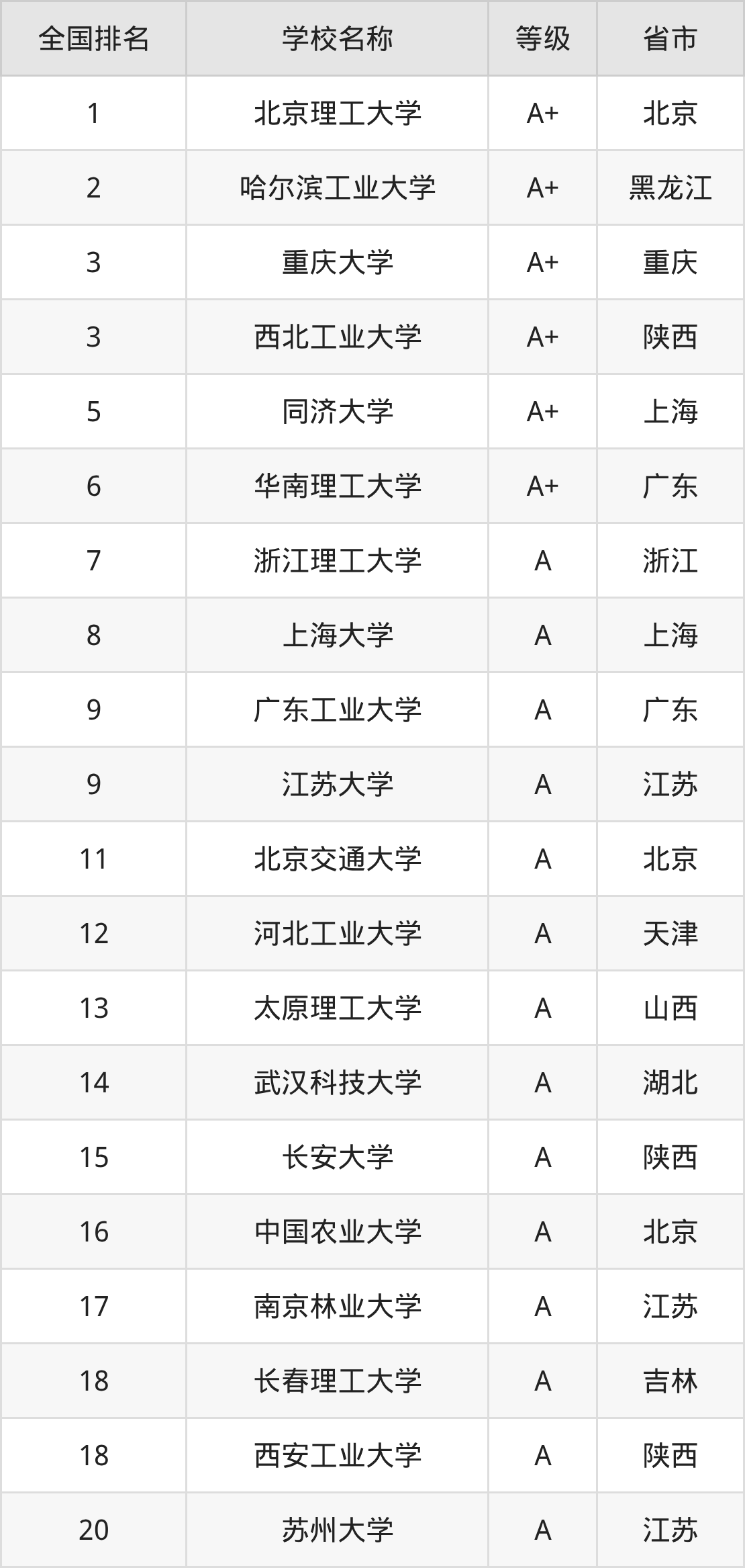下面是机械电子工程专业全国排名前10的大学名单及实力评级: