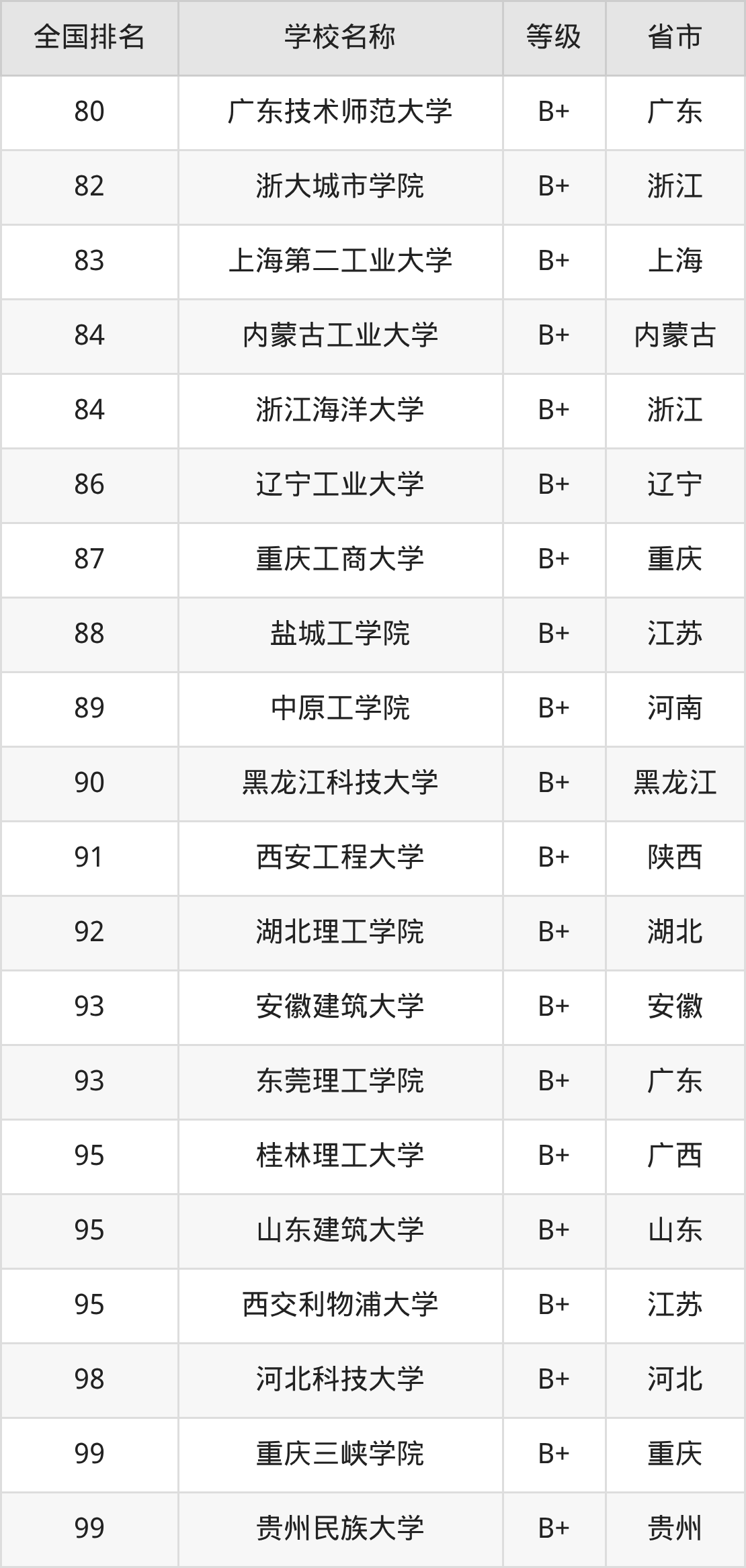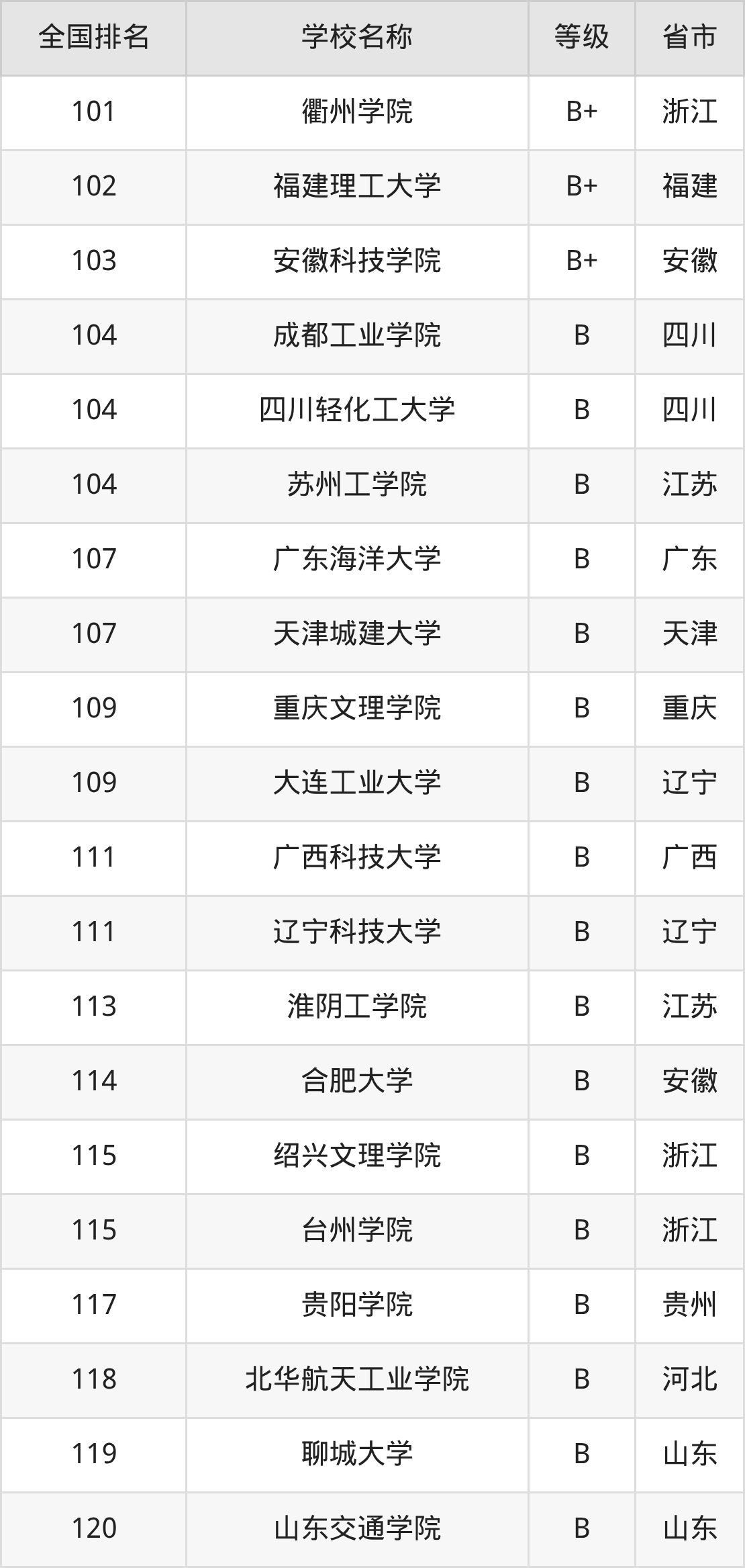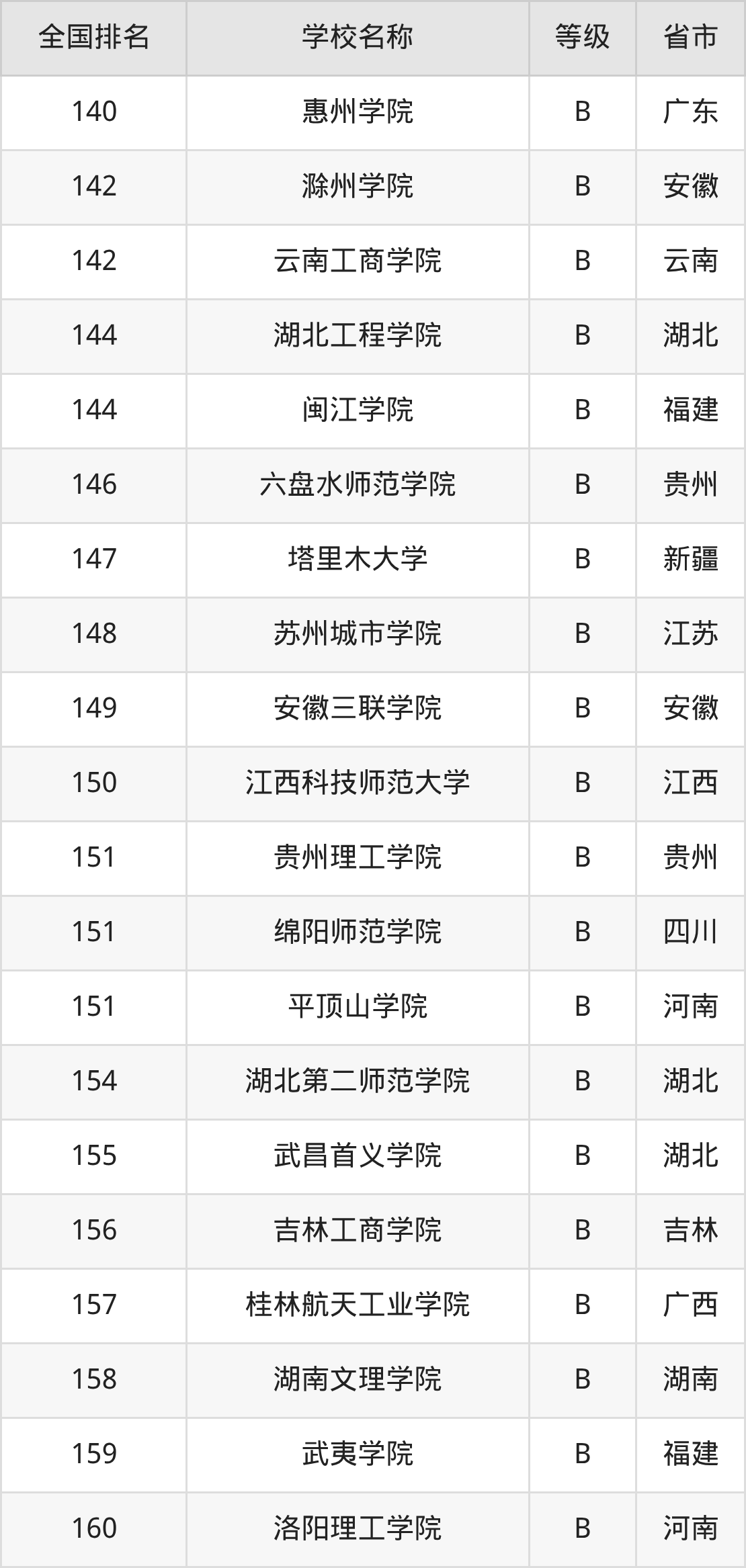 完整版排名请看下表: